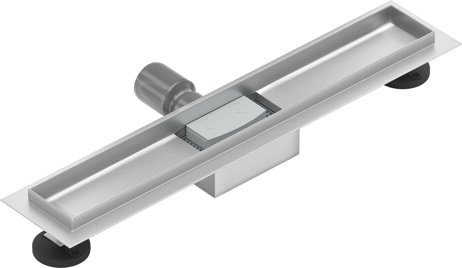 El desagüe lineal se instala a una profundidad de solo 52 mm. La pequeña profundidad permite una preparación más fácil de la superficie para la instalación del desagüe y un nivelado sencillo, asegurando así una alta estética y un eficiente drenaje del agua.