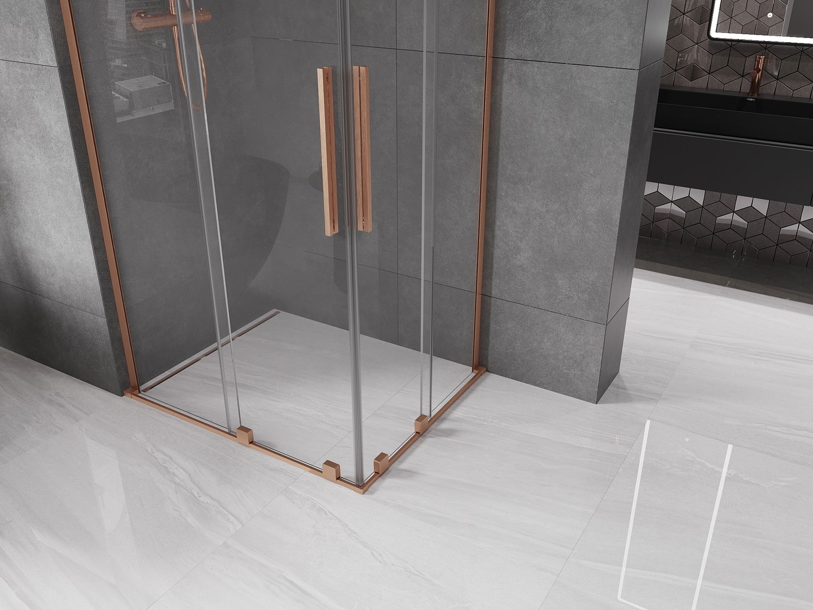 Mexen Velar L Duo cabina de ducha corrediza 90 x 80 cm, transparente, cobre cepillado - 871-090-080-02-03-65