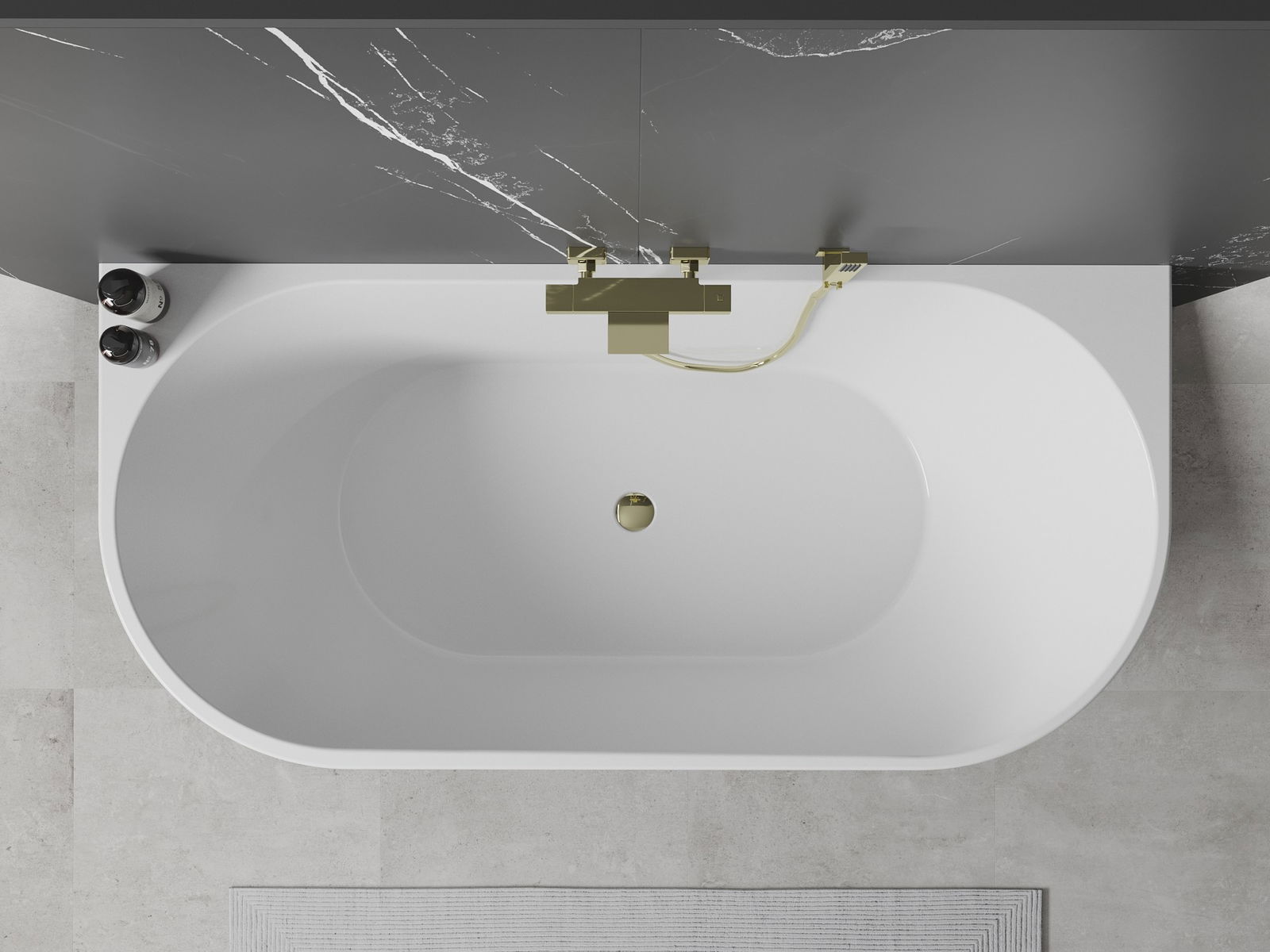 Mexen Oval bañera independiente junto a la pared 140 x 75 cm, blanca, rebosadero dorado - 52671407500-50