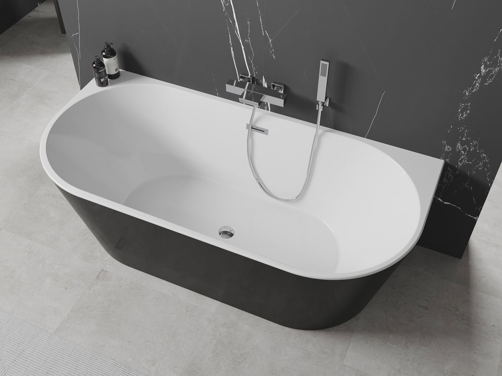 Mexen Oval bañera independiente adosada 140 x 75 cm, blanca/negra, rebosadero cromado - 52671407575-01