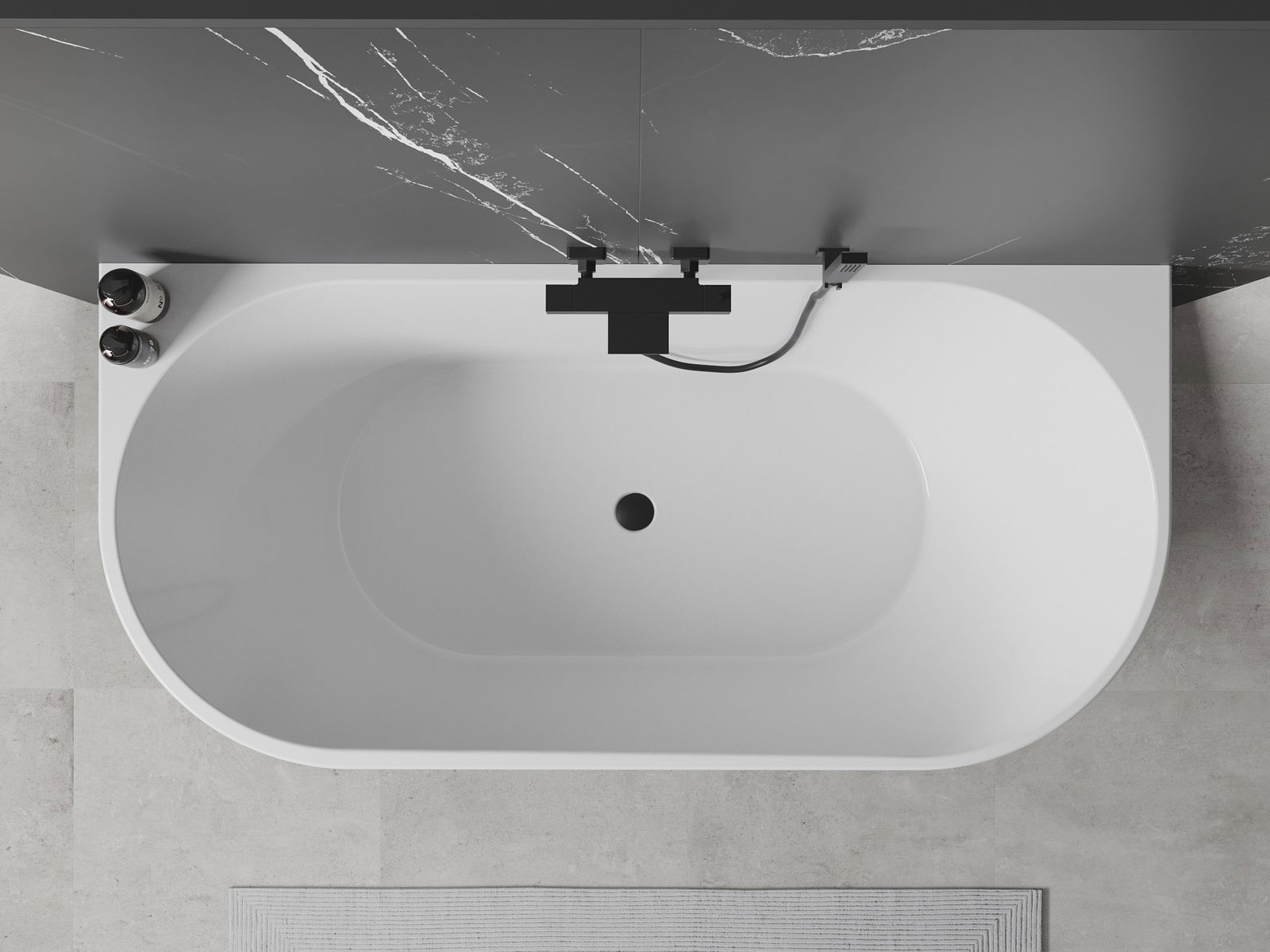 Mexen Oval bañera exenta adosada 150 x 75 cm, blanca, rebosadero negro - 52671507500-70