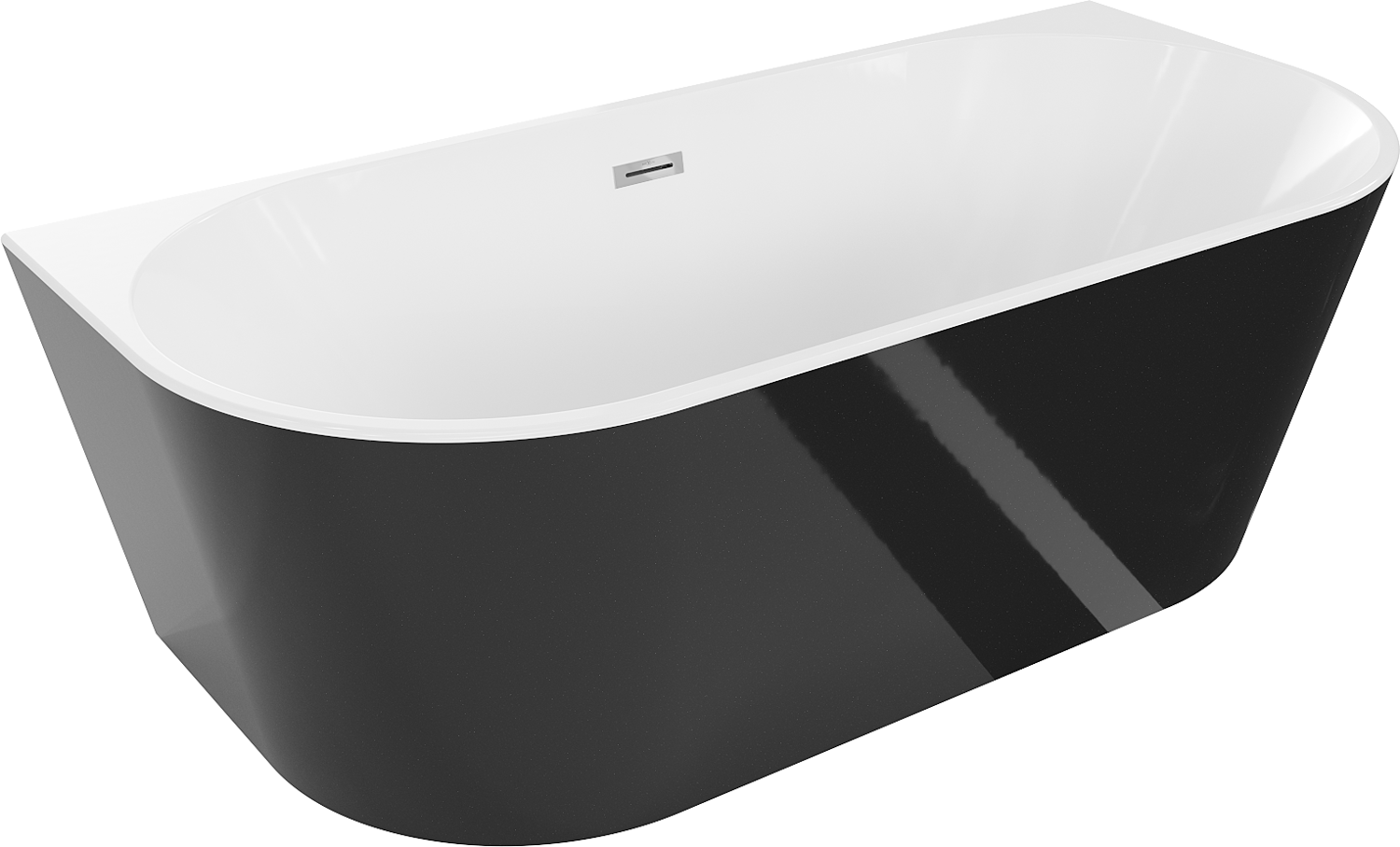 Mexen Oval bañera exenta adosada 160 x 80 cm, blanca/negra, rebosadero cromo - 52671608075-01