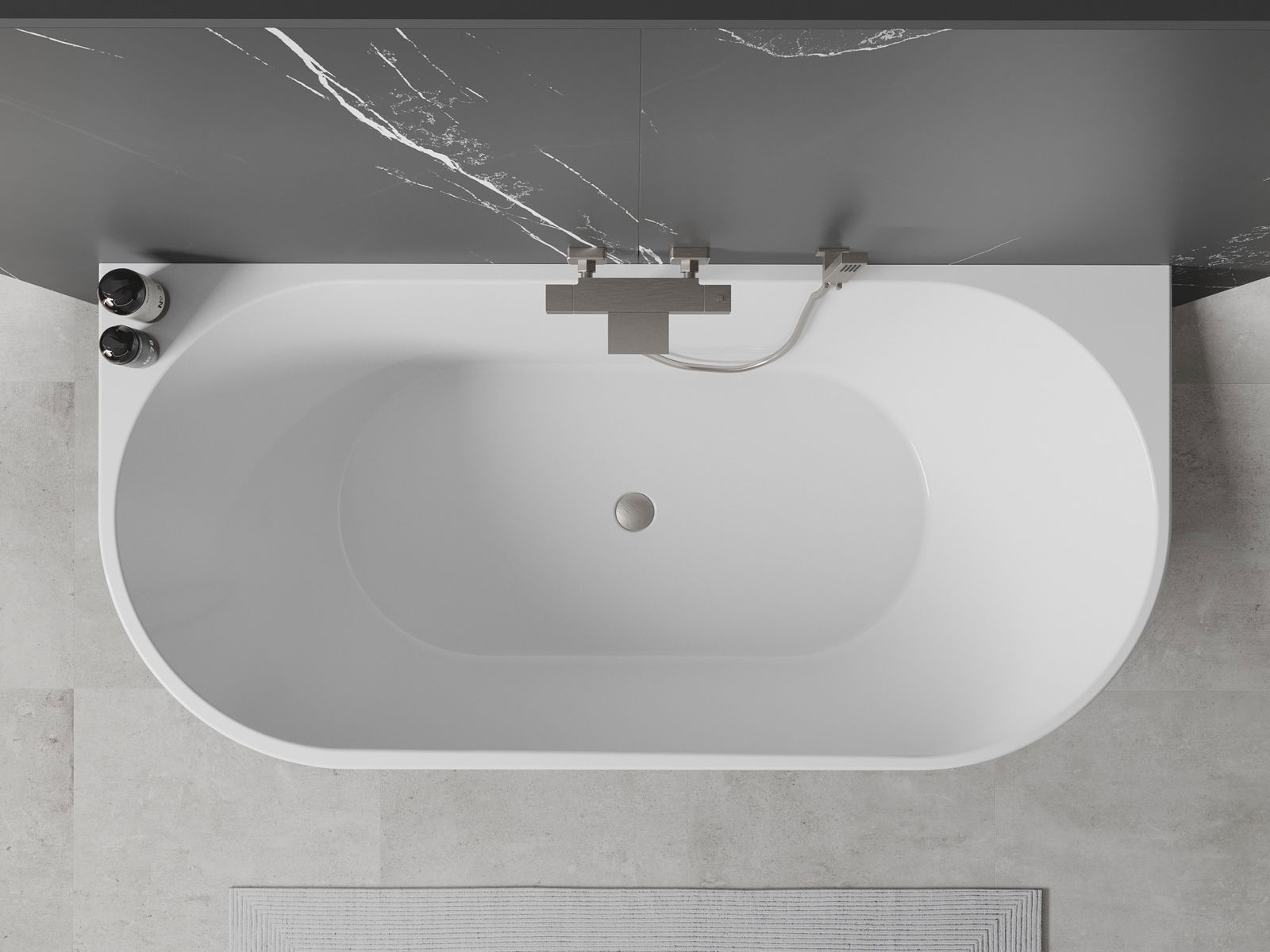 Mexen Oval bañera independiente adosada 170 x 80 cm, blanca, desbordamiento níquel cepillado - 52671708000-97