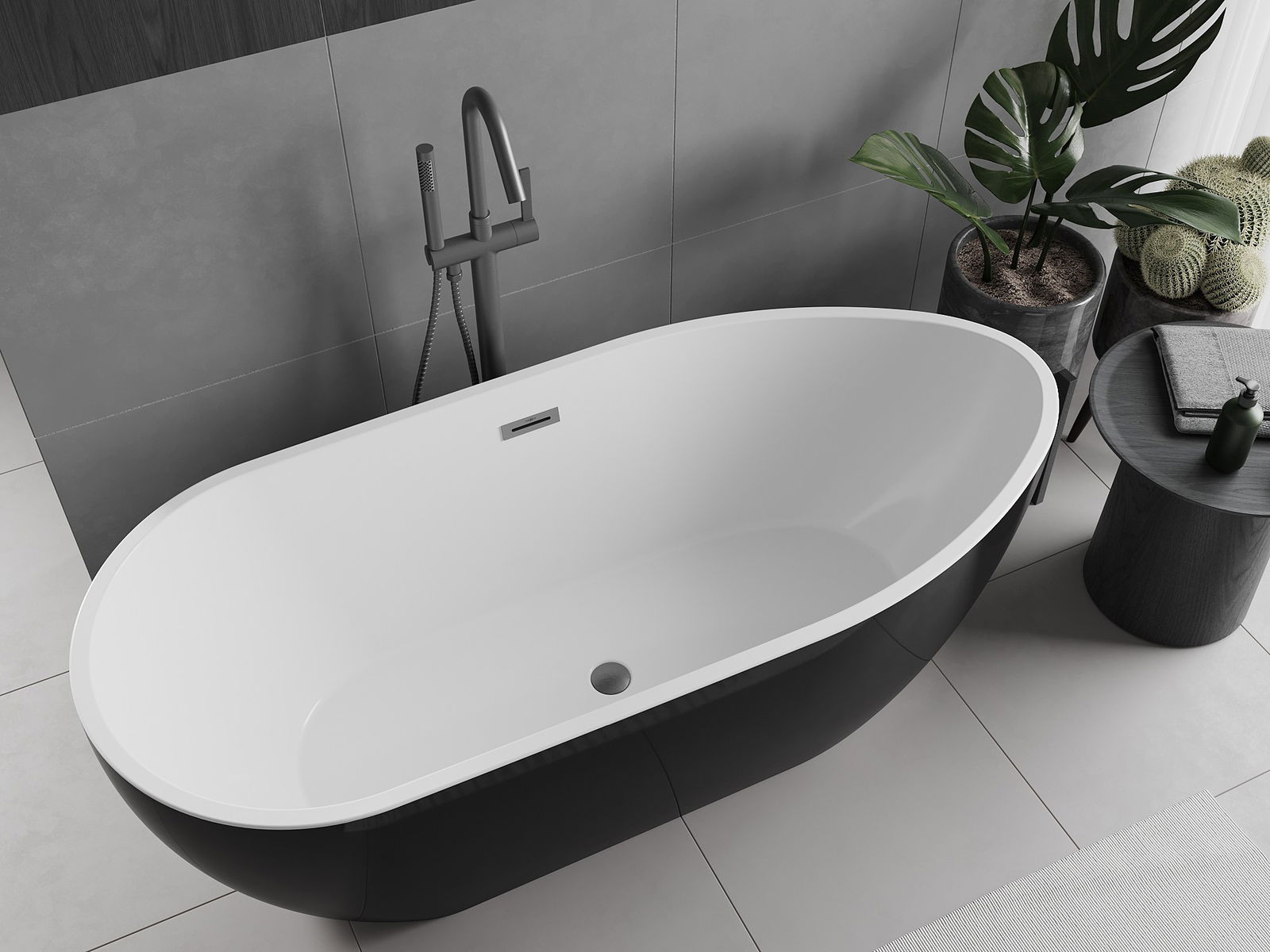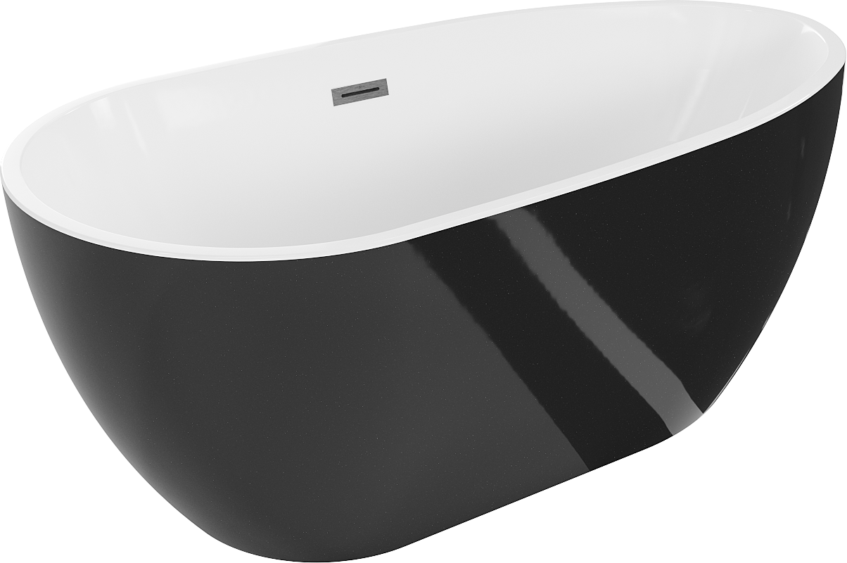 Mexen Eos bañera exenta 150 x 75 cm, blanco/negro, rebosadero gun gray cepillado - 52471507575-66