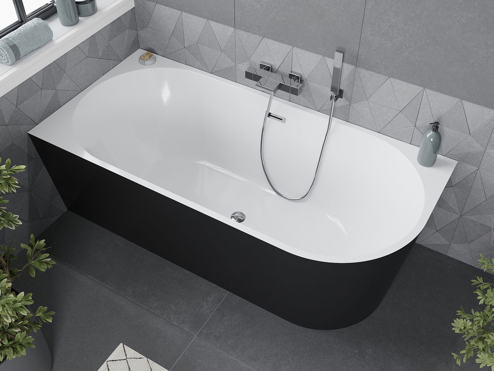 Mexen Mia bañera exenta de esquina izquierda 150 x 75 cm, blanca/negra, rebosadero cromado - 52691507575L-01
