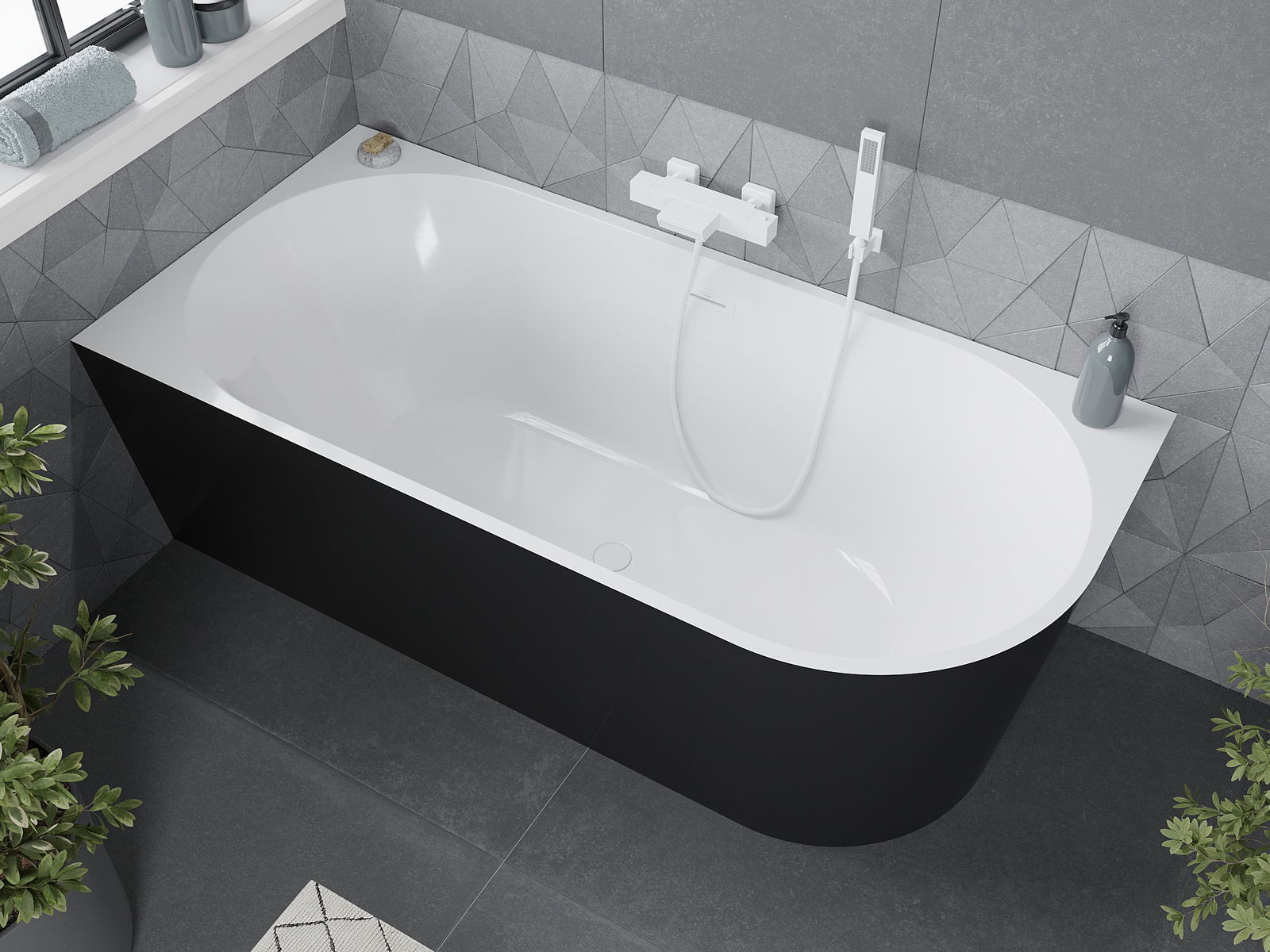 Mexen Mia bañera exenta esquina izquierda 170 x 80 cm, blanca/negra, desbordamiento blanco - 52691708075L-20