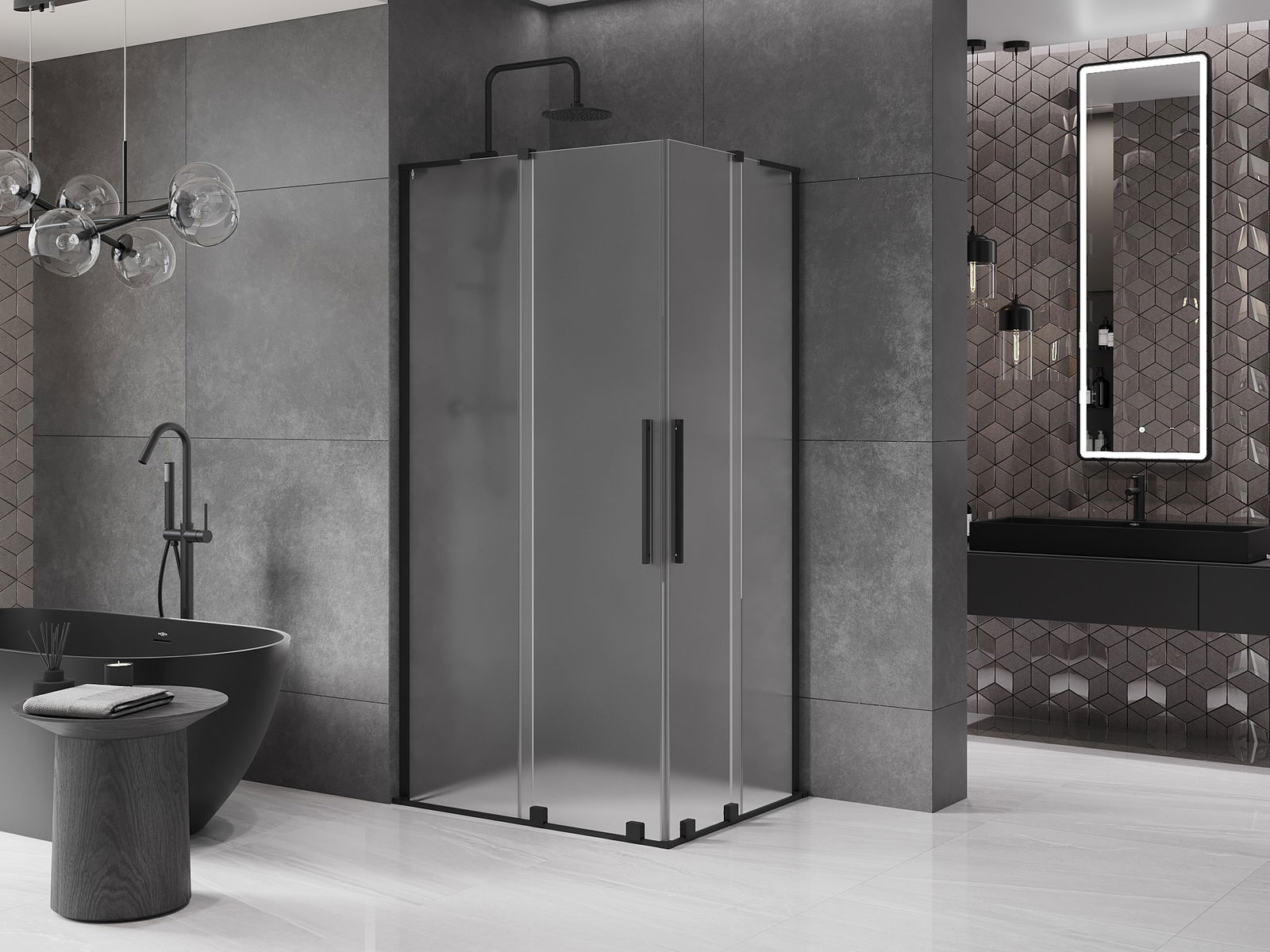 Mexen Velar L Duo cabina de ducha corredera 100 x 90 cm, esmerilada, negra - 871-100-090-02-33-70
