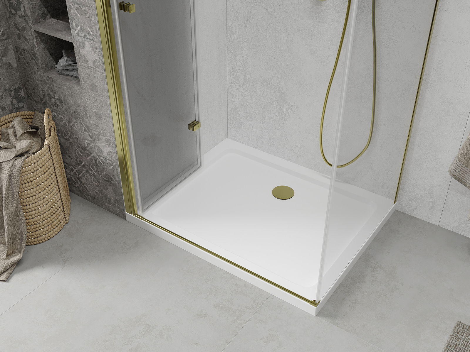 Mexen Lima cabina de ducha plegable 90 x 100 cm, transparente, dorada + plato de ducha Flat - 856-090-100-50-00-4010