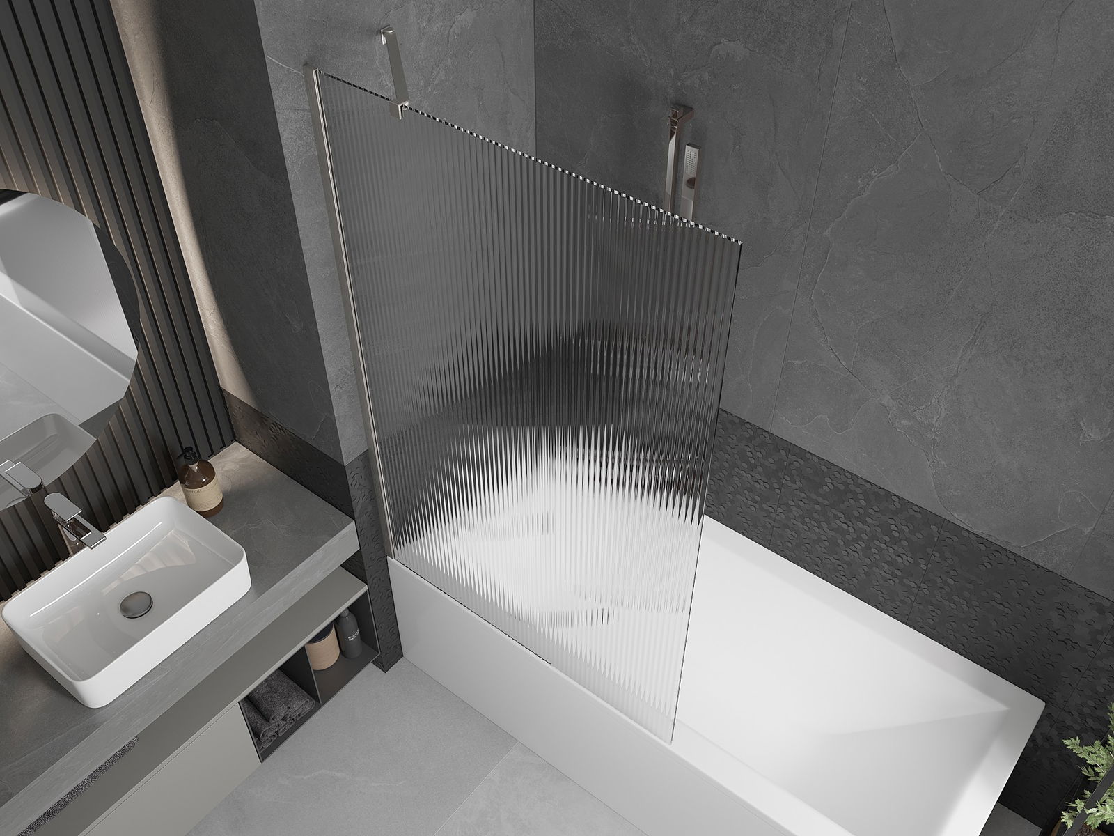 Protección efectiva contra el derrame de agua durante el baño. La mampara tiene juntas que se ajustan perfectamente a la superficie del vidrio y al borde de la bañera. Solución funcional que garantiza seguridad y facilidad de limpieza.