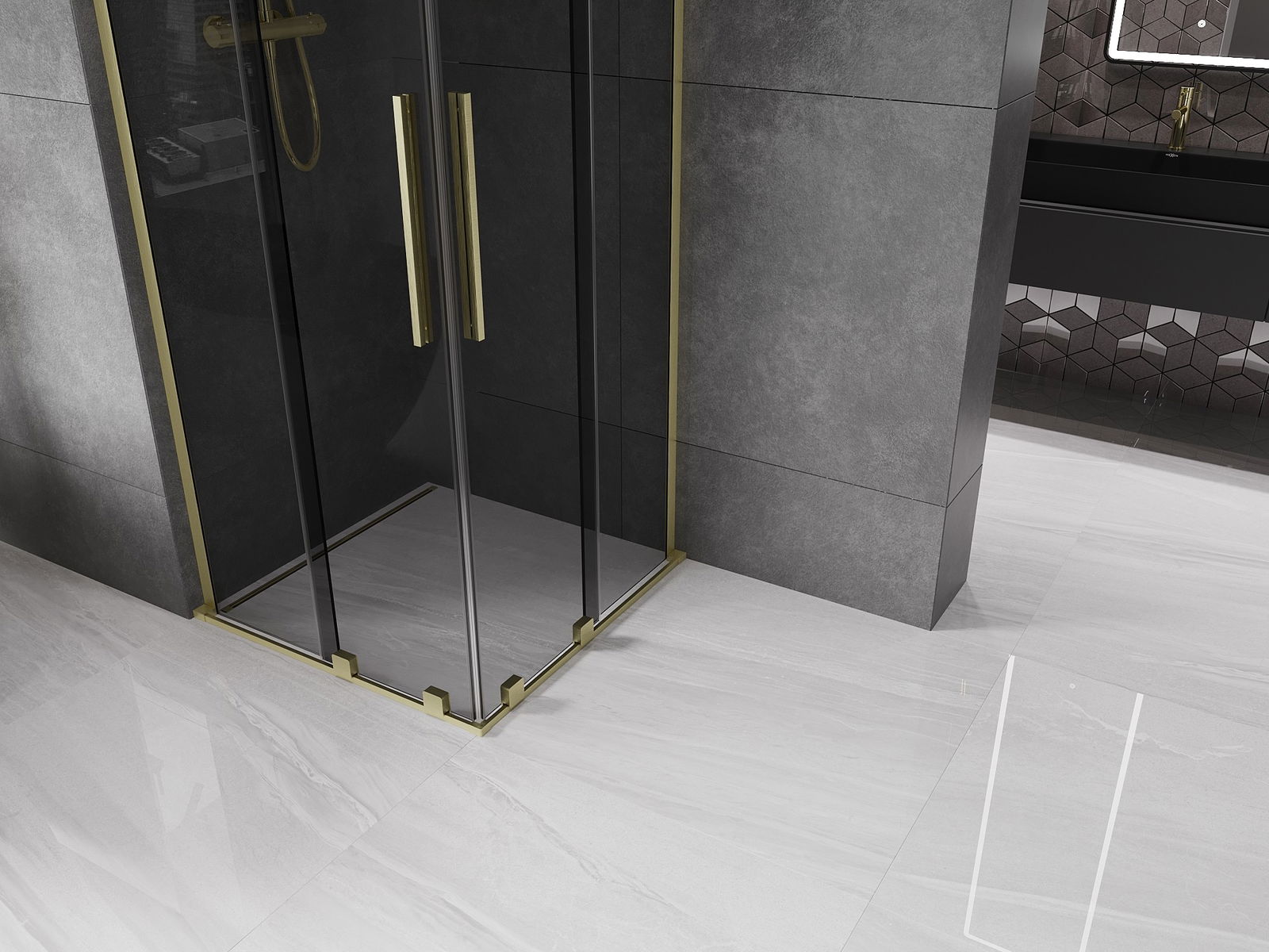 Mexen Velar L Duo cabina de ducha corredera 90 x 90 cm, grafito, oro cepillado - 871-090-090-02-43-55
