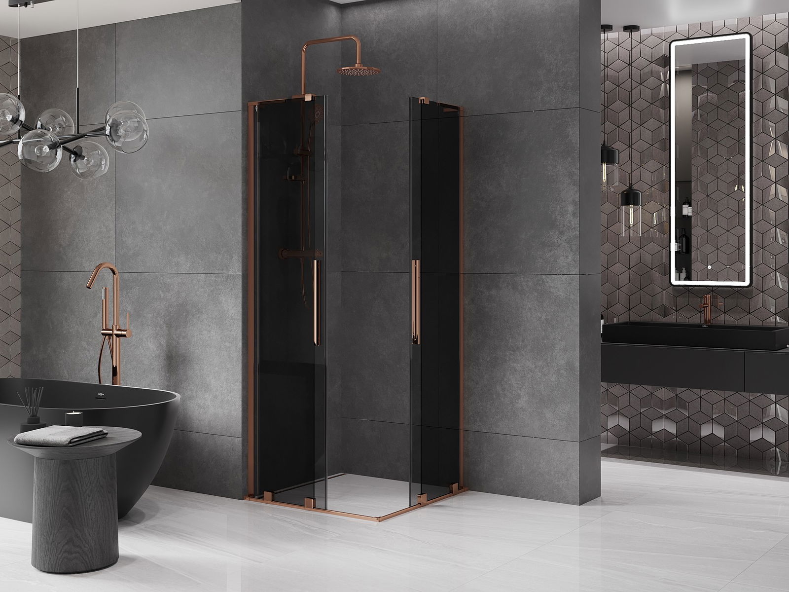 Mexen Velar L Duo cabina de ducha corredera 90 x 90 cm, grafito, oro rosa - 871-090-090-02-43-60