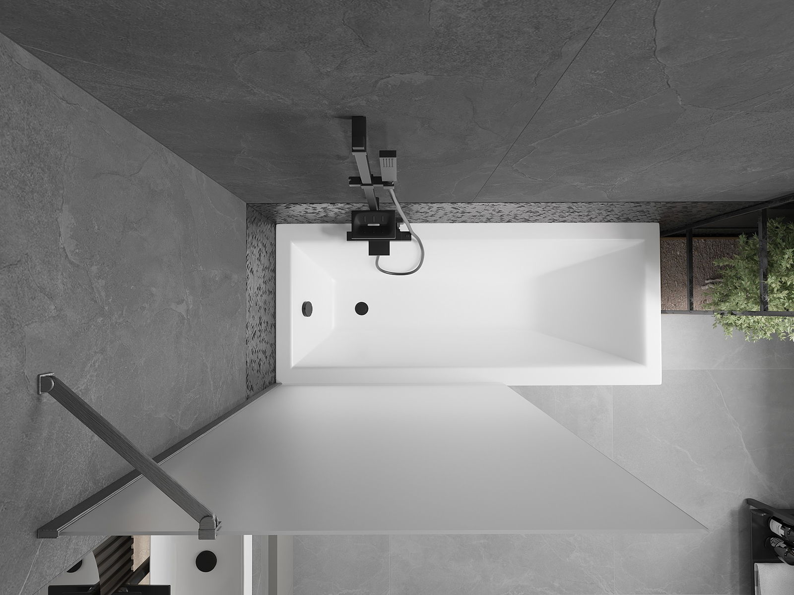 Protección efectiva contra el derrame de agua durante el baño. La mampara tiene juntas que se ajustan perfectamente a la superficie del vidrio y al borde de la bañera. Solución funcional que garantiza seguridad y facilidad de limpieza.