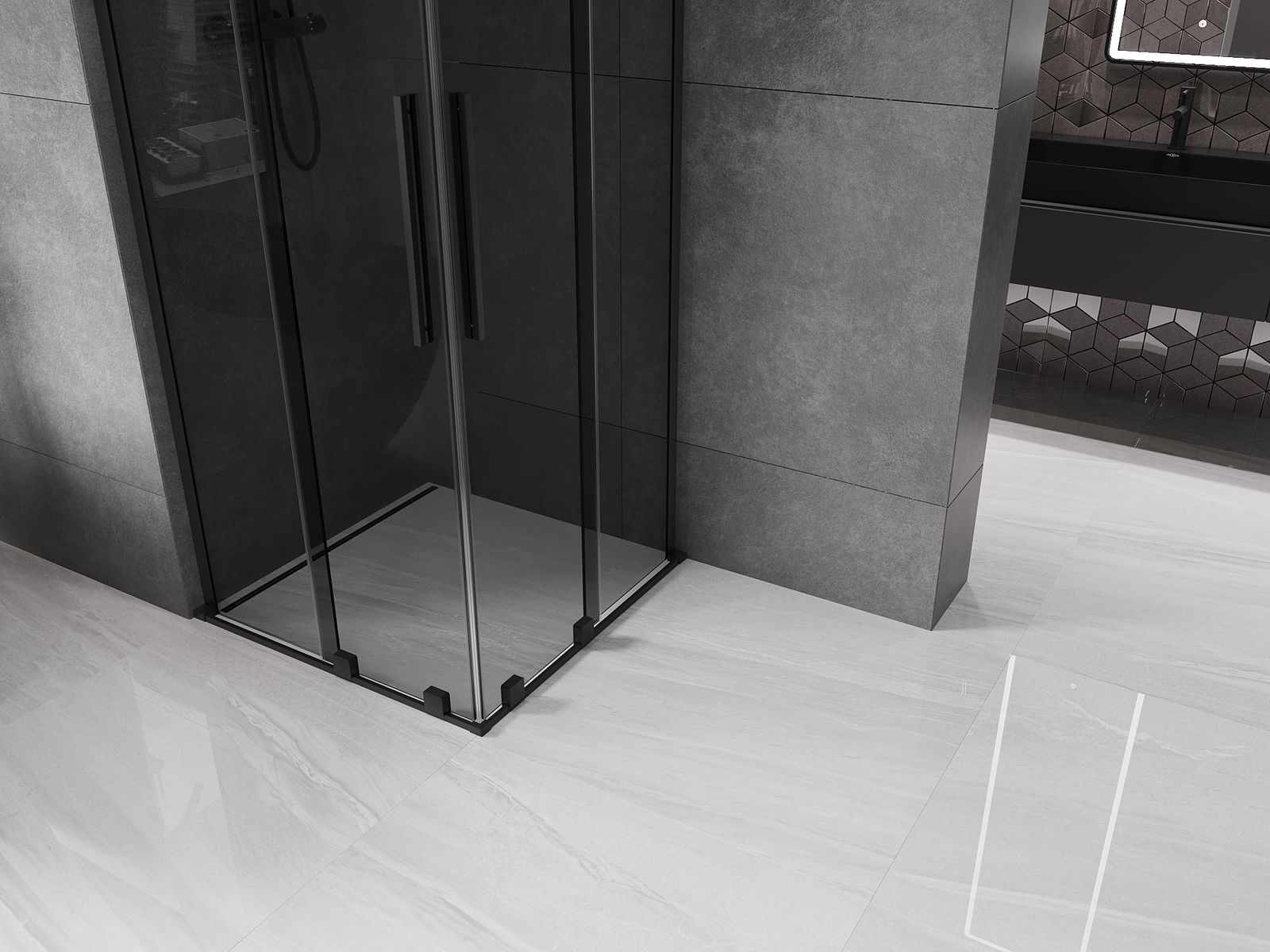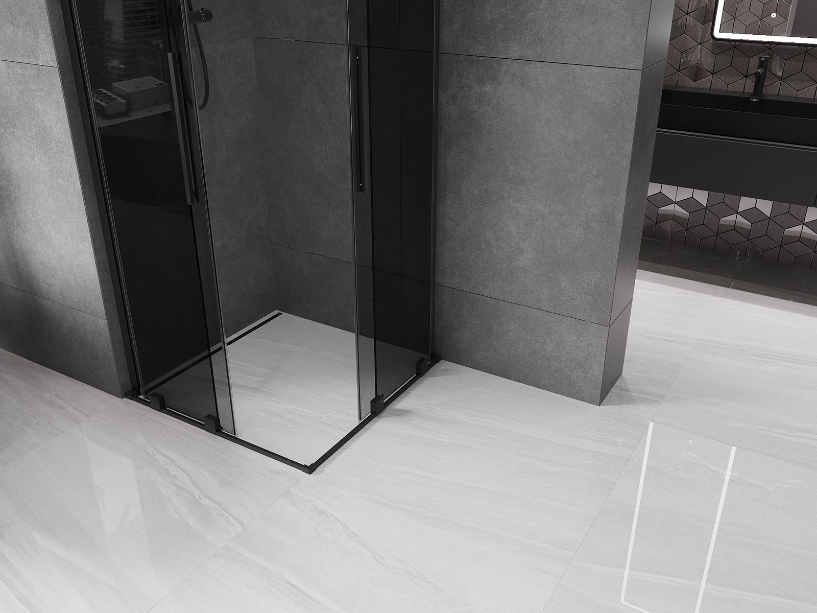 Mexen Velar L Duo cabina de ducha corredera 90 x 90 cm, grafito, negro - 871-090-090-02-43-70