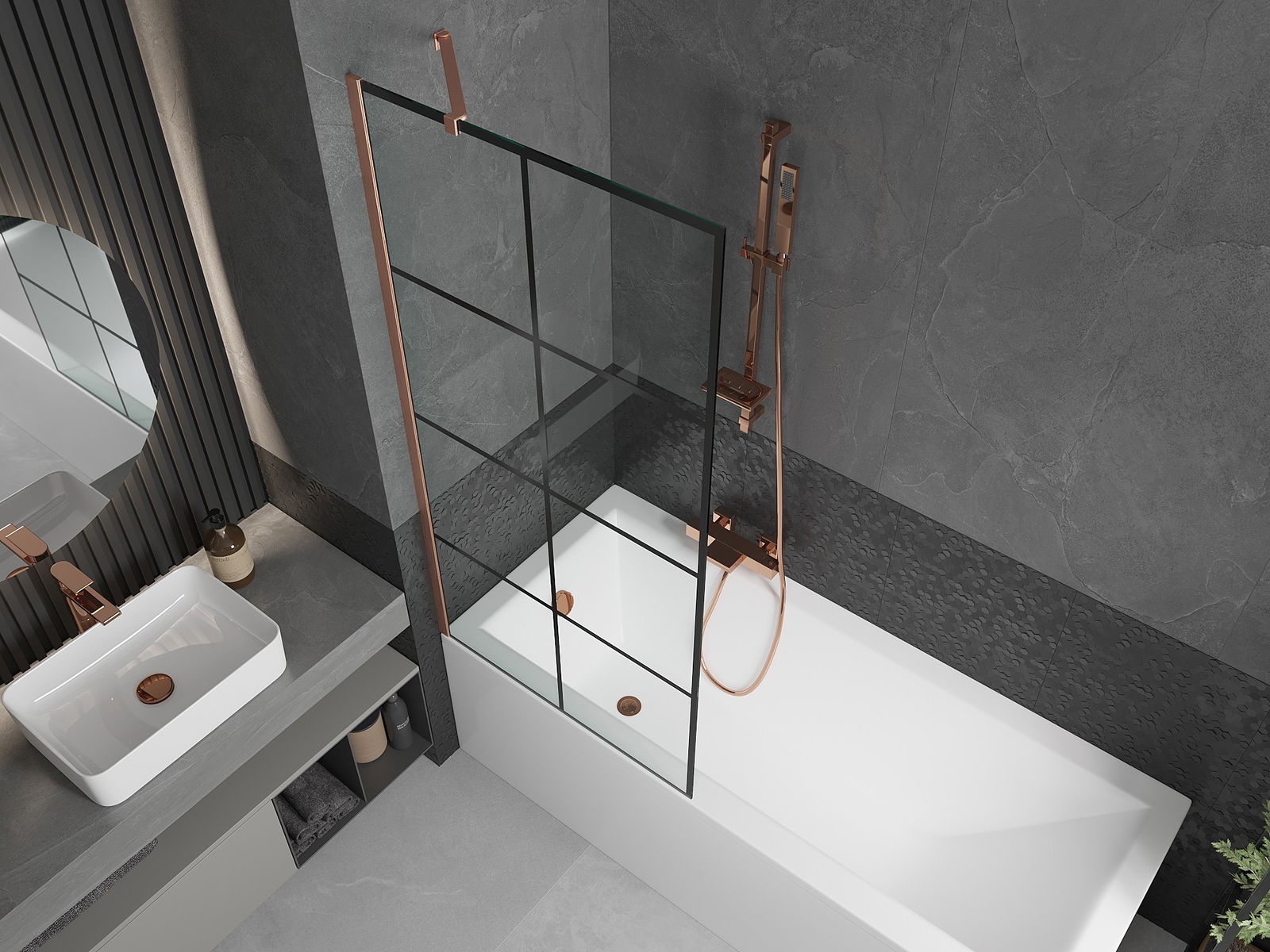 Protección efectiva contra el derrame de agua durante el baño. La mampara tiene juntas que se ajustan perfectamente a la superficie del vidrio y al borde de la bañera. Solución funcional que garantiza seguridad y facilidad de limpieza.