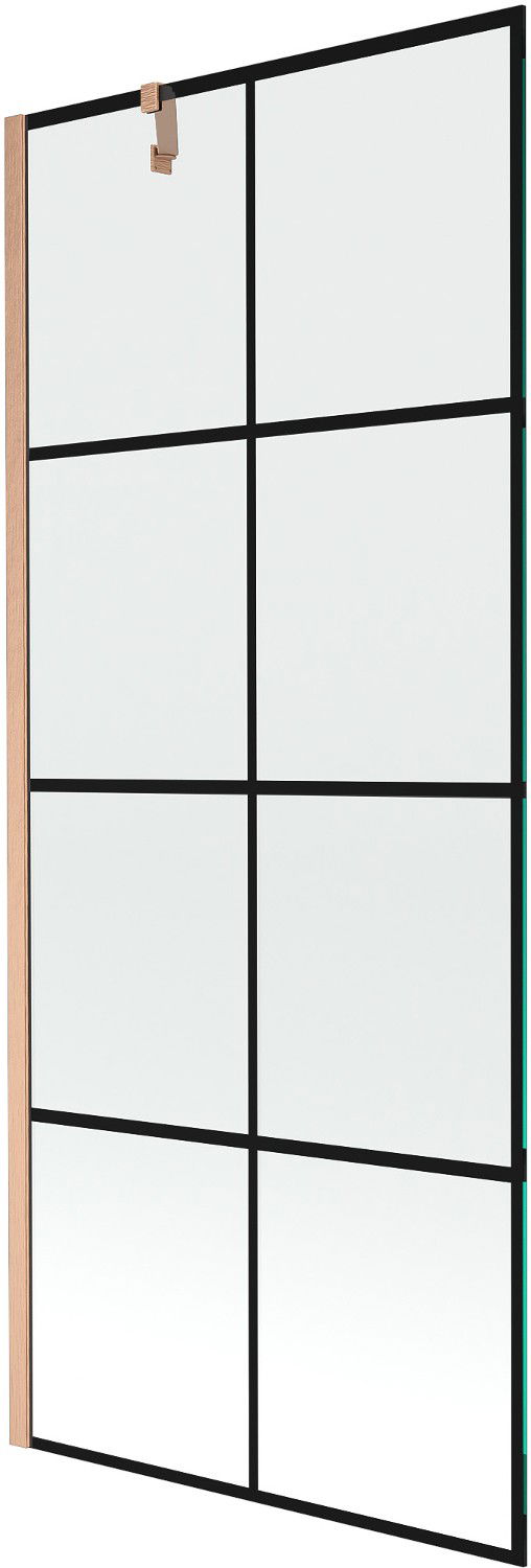 Mexen Next mampara de baño de 1 hoja 80 x 150 cm, cuadrícula negra, cobre cepillado - 895-080-000-00-77-65