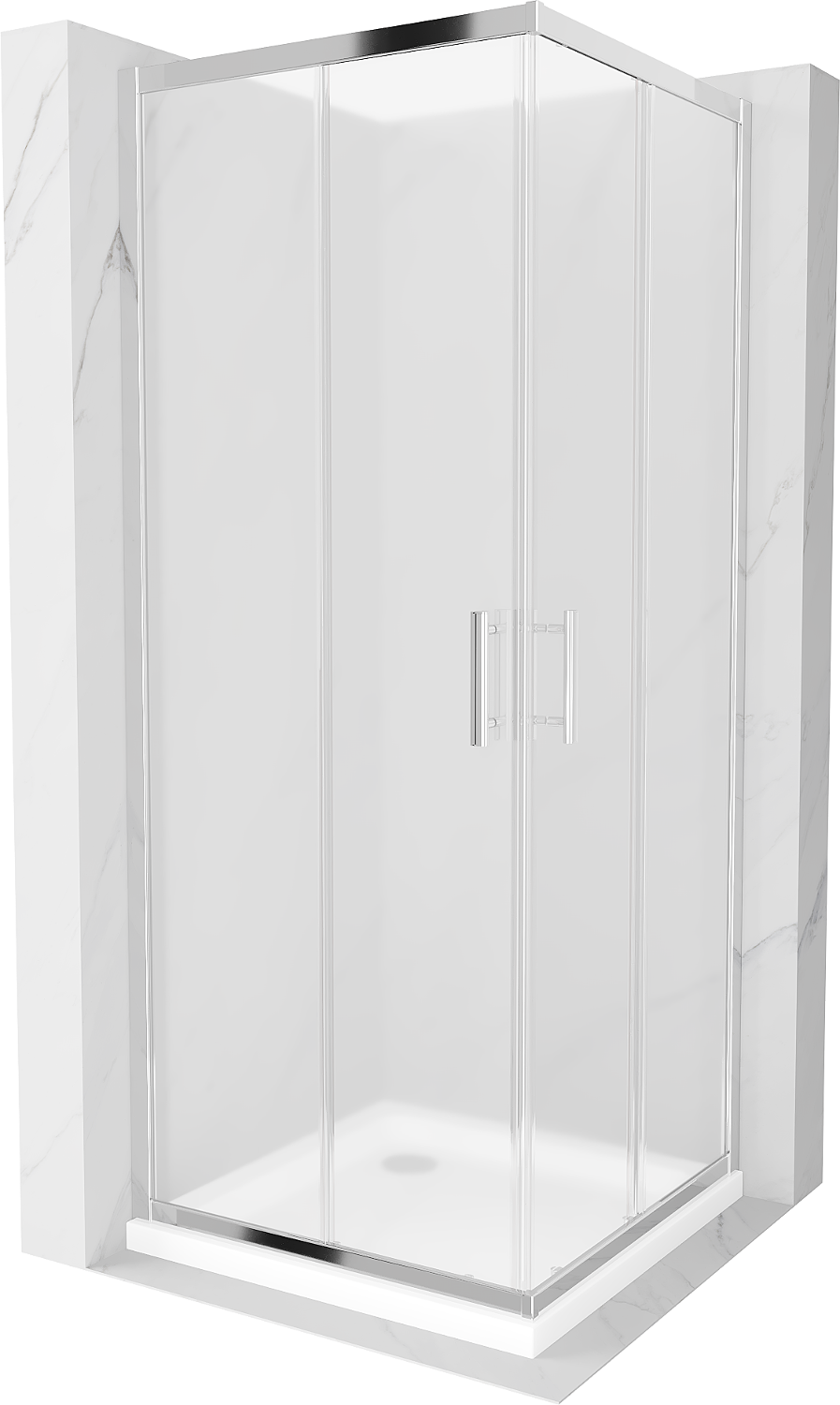 Mexen Rio cabina de ducha cuadrada 90 x 90 cm, escarchada, cromo + plato de ducha Flat, blanco - 860-090-090-01-30-4010