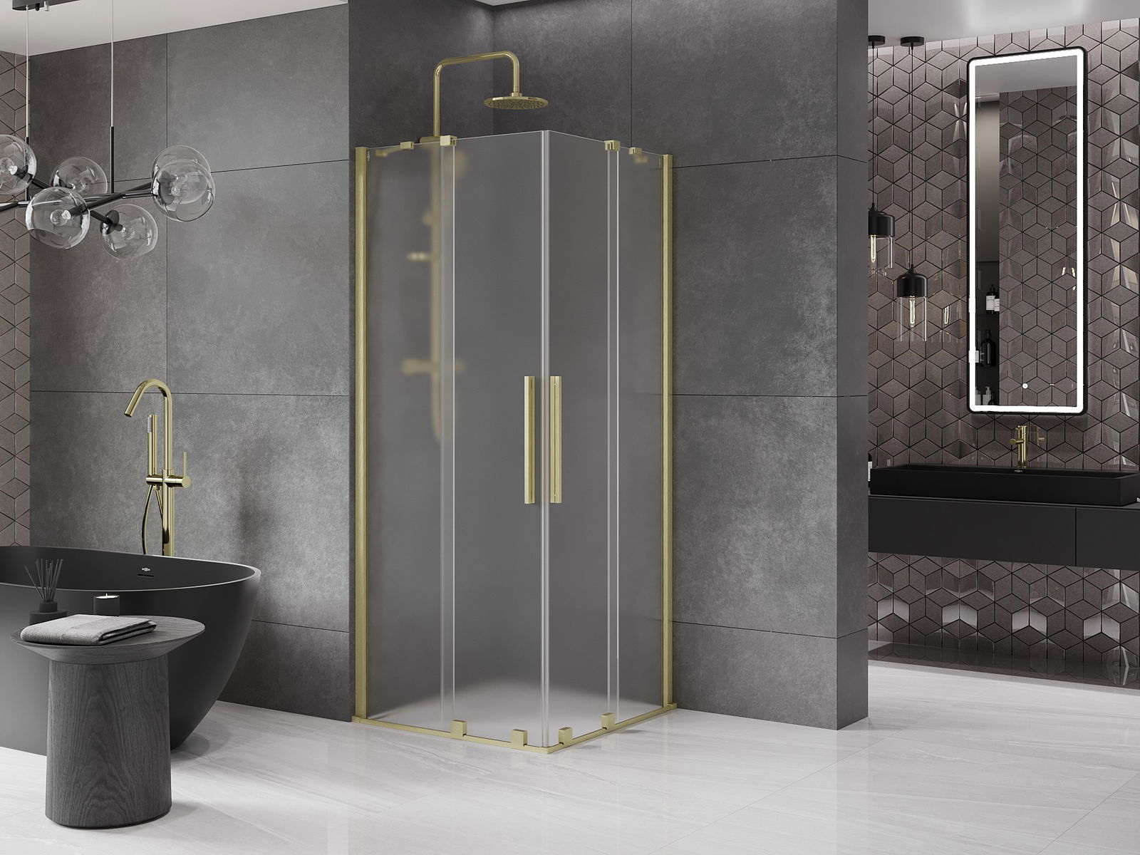 Mexen Velar Duo cabina de ducha corredera 80 x 80 cm, escarcha, dorado cepillado - 871-080-080-32-55