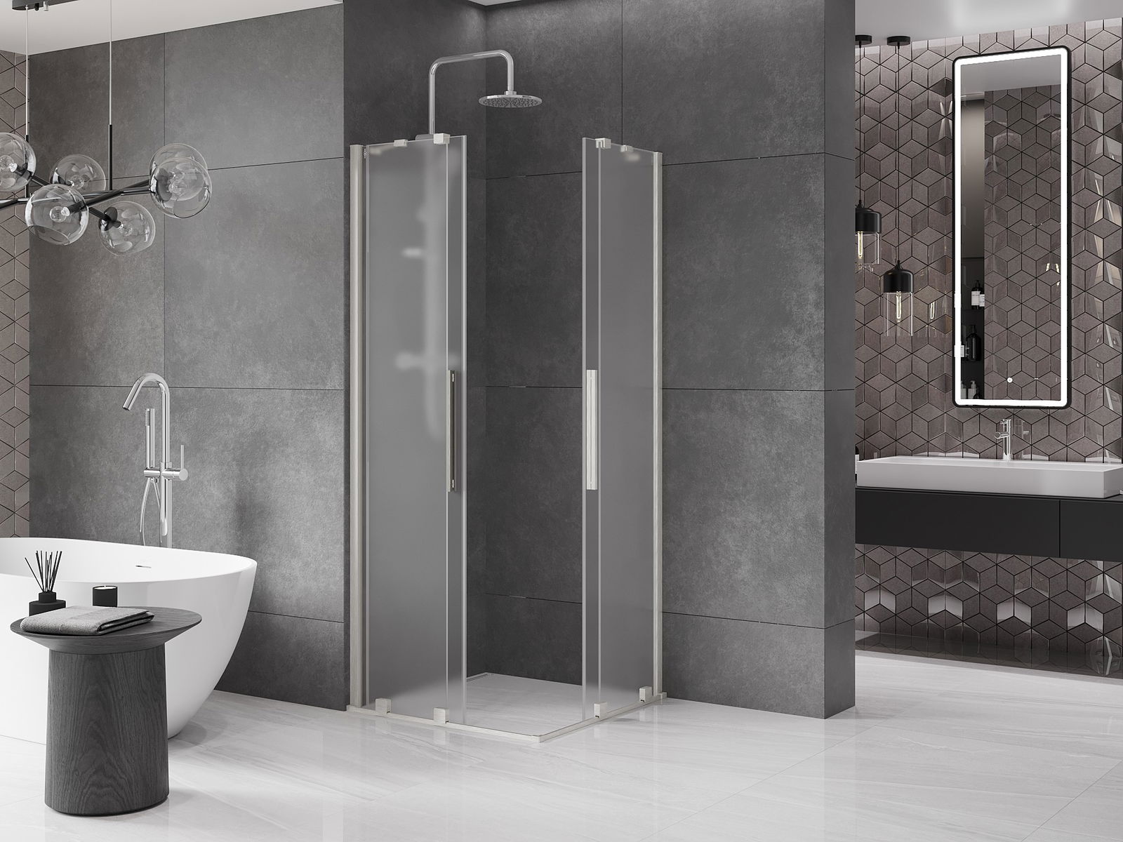 Mexen Velar Duo cabina de ducha corrediza 90 x 90 cm, escarcha, níquel cepillado - 871-090-090-32-97