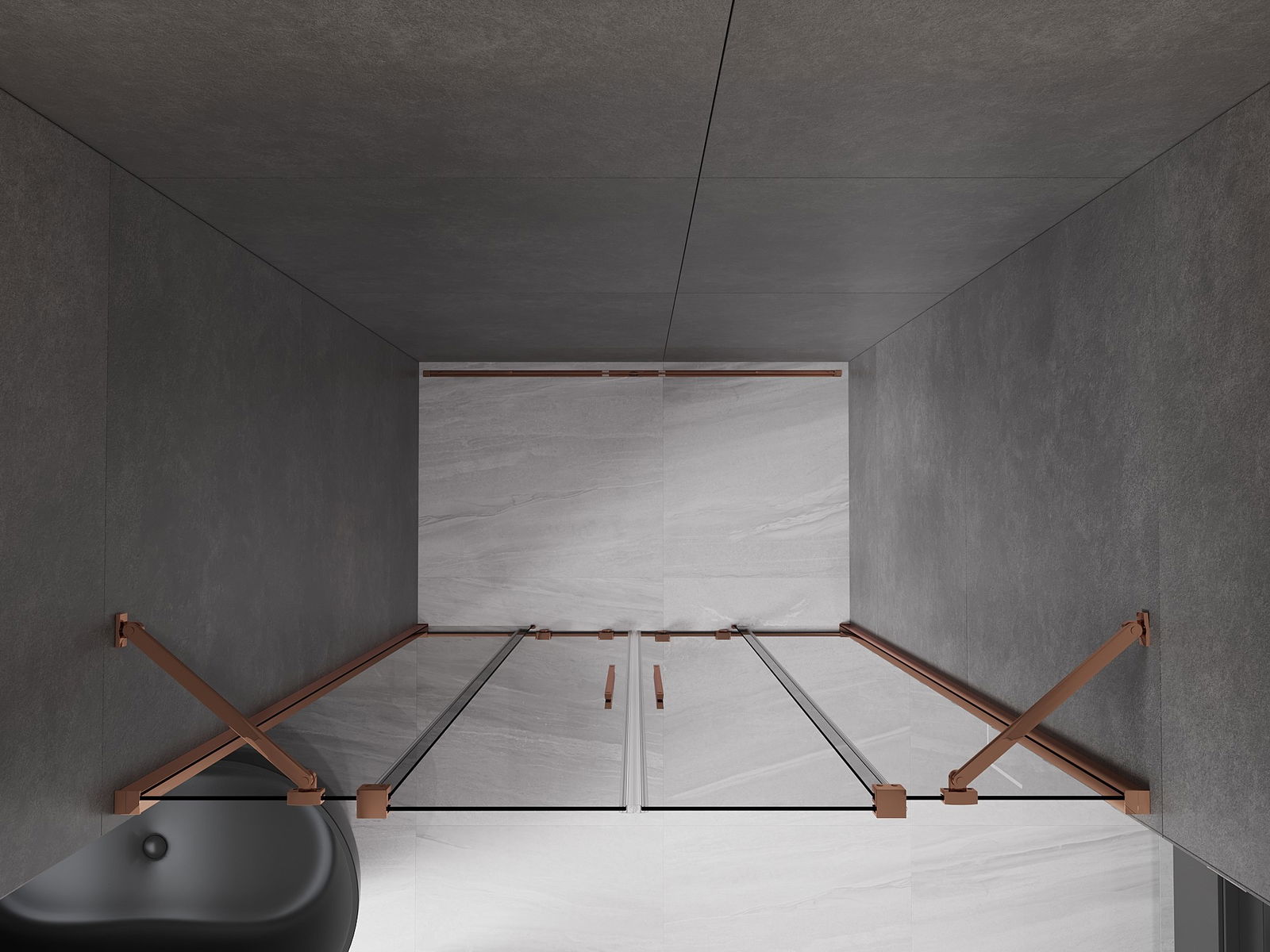 Mexen Velar Duo puertas de ducha correderas 150 cm, grafito, oro rosa - 871-150-000-42-60