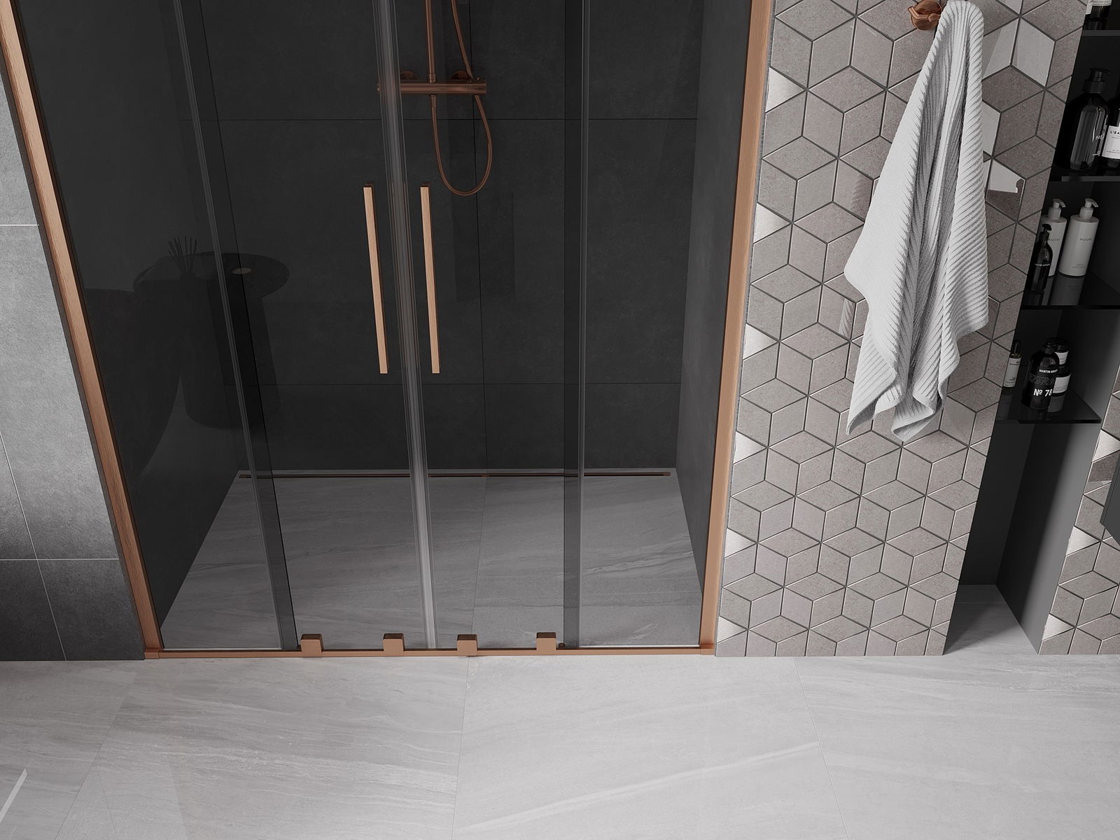 Mexen Velar Duo puerta de ducha corredera 150 cm, grafito, cobre cepillado - 871-150-000-42-65