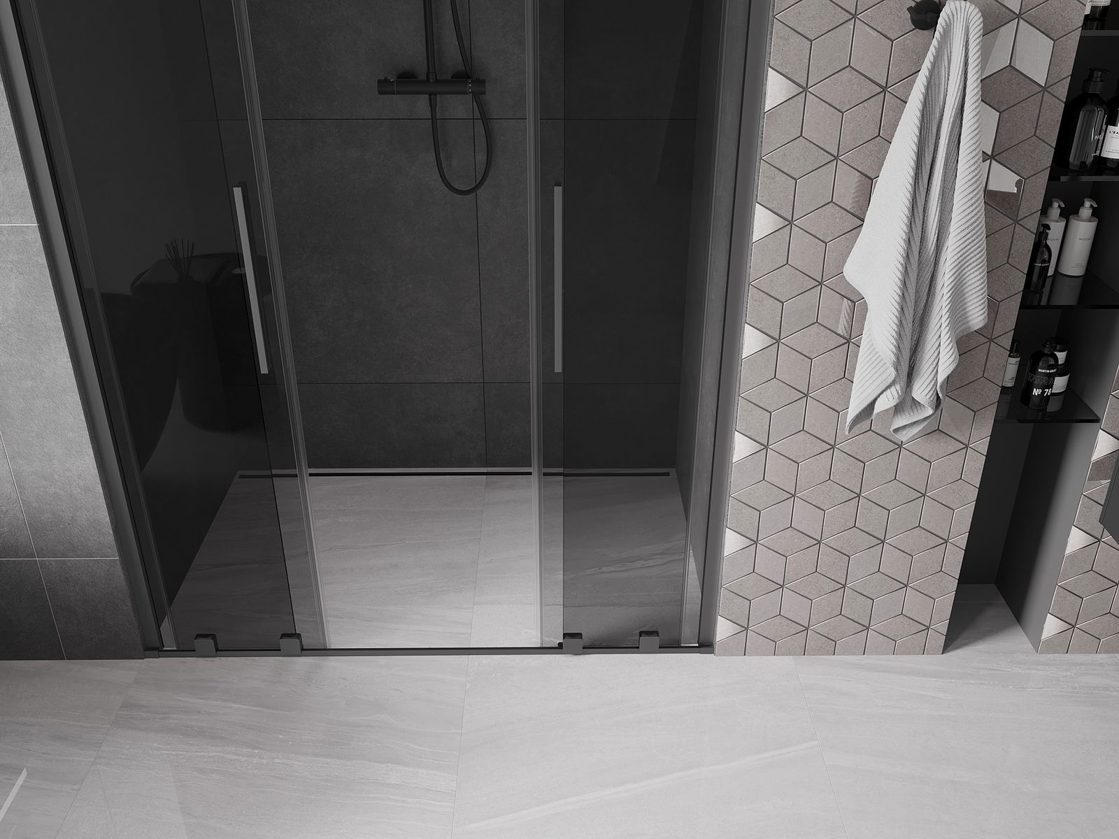 El práctico y cómodo asa está hecho de acero inoxidable. La forma moderna combinada con un acabado a juego con el color de los perfiles le da a todo un aspecto moderno y elegante, resaltando la estética de cada baño.