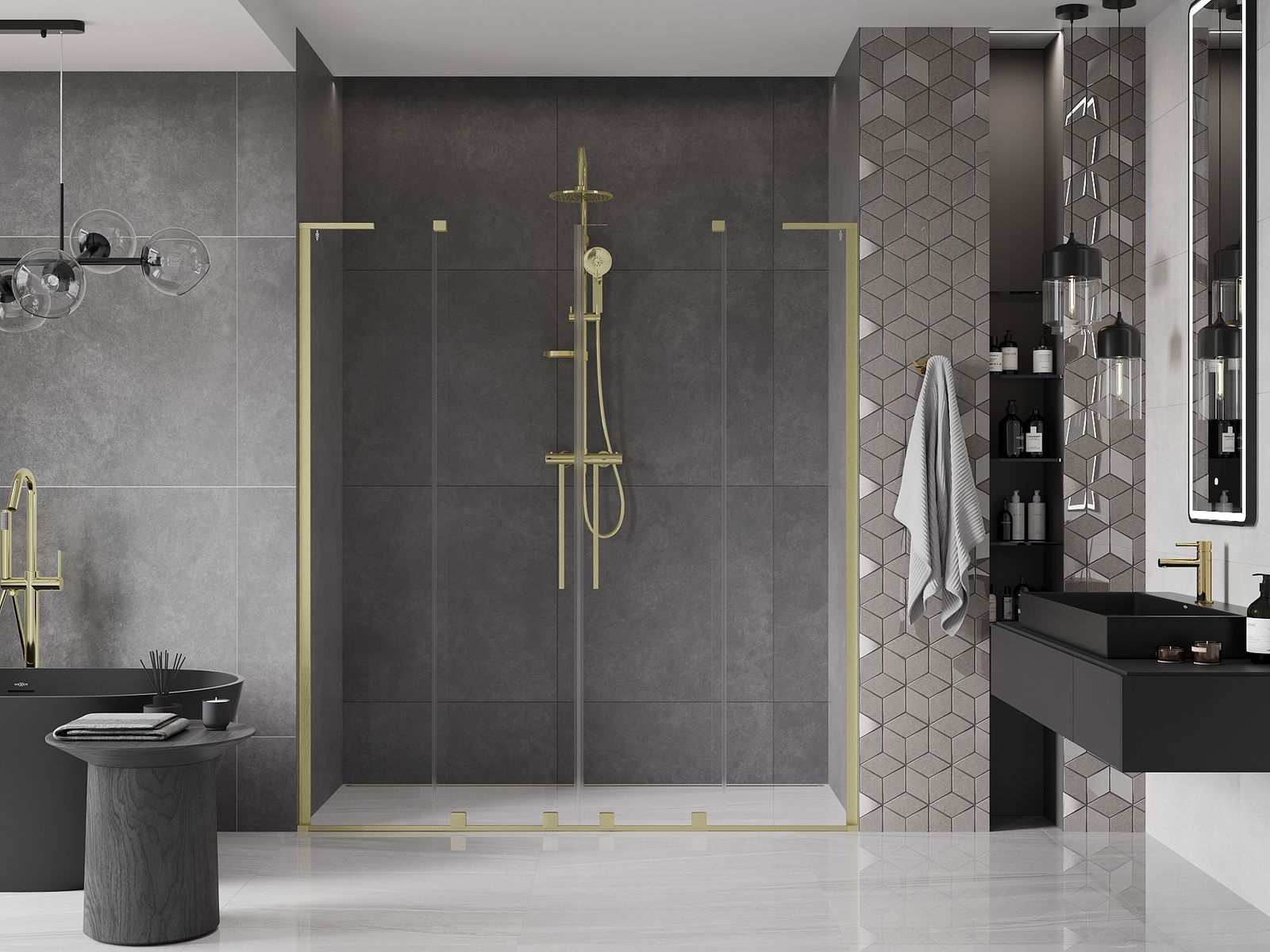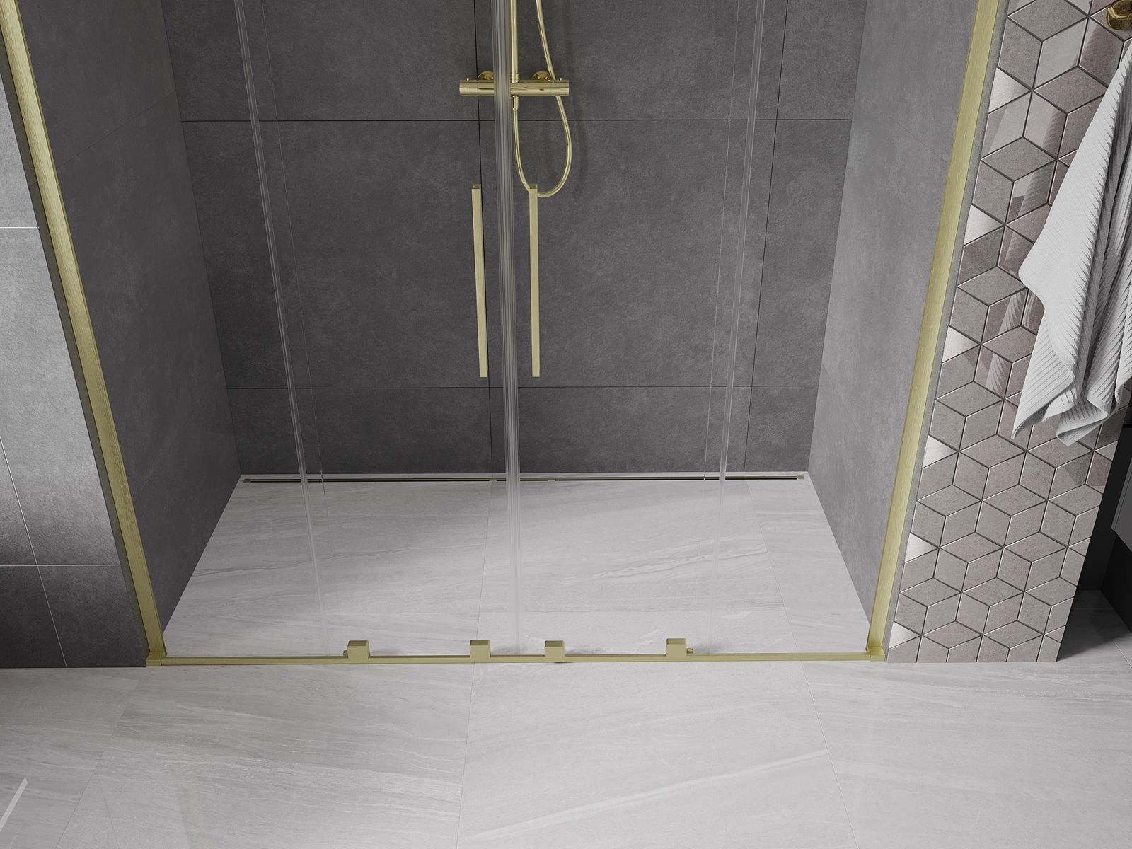 Mexen Velar L Duo puerta de ducha corredera 180 cm, transparente, oro cepillado - 871-180-003-02-55