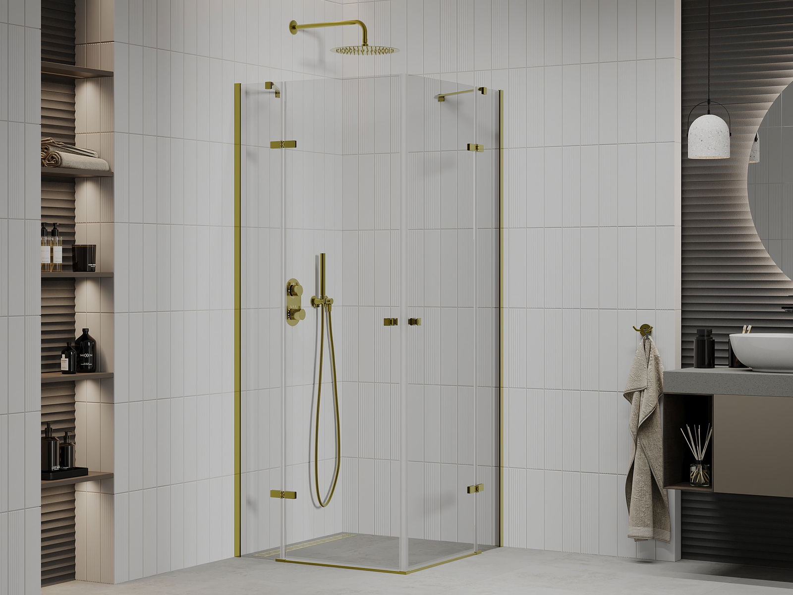 Mexen Roma Duo cabina de ducha abatible 80 x 80 cm, transparente, dorado - 854-080-080-50-00-02