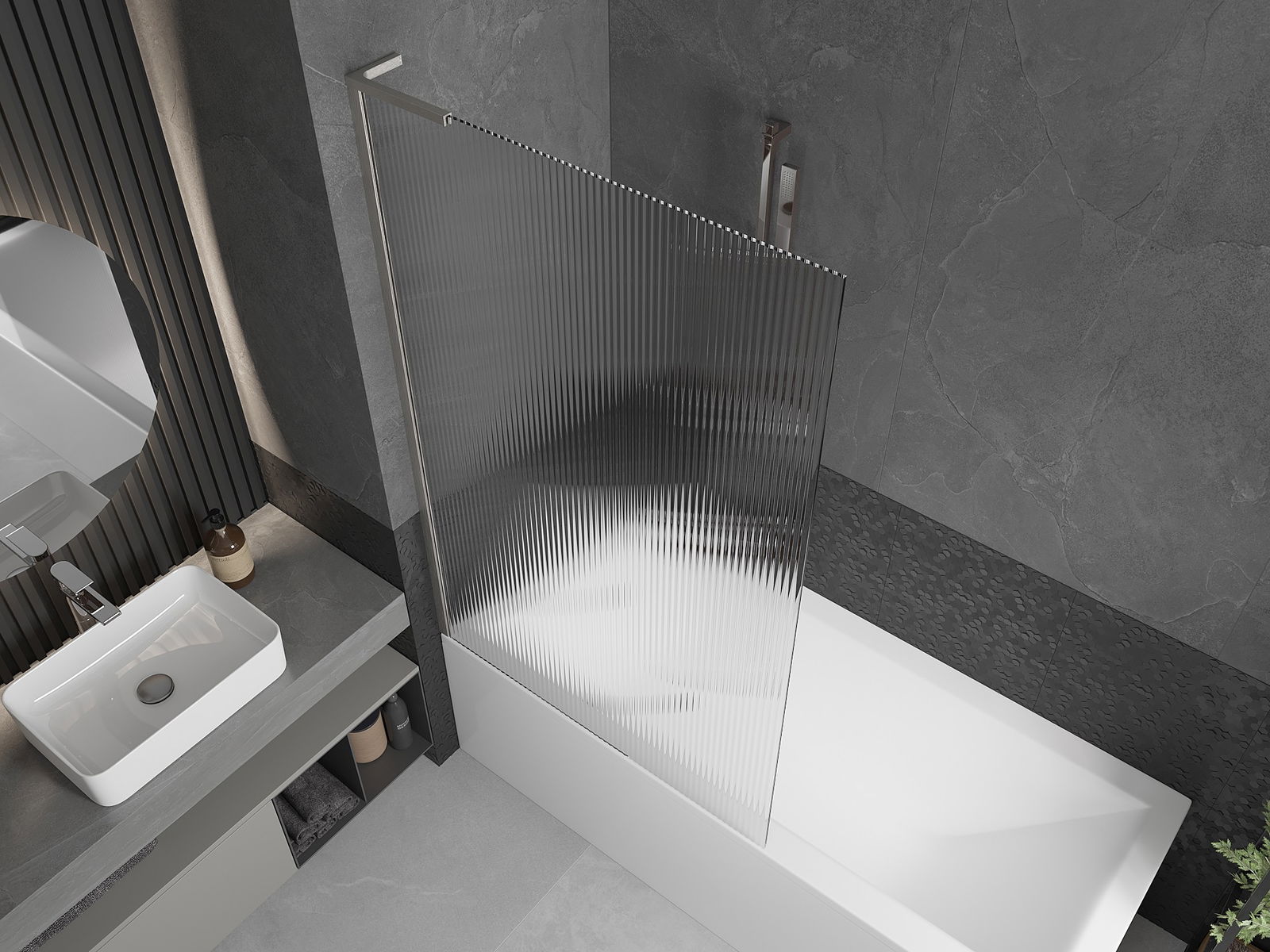 Mexen Next L mampara de baño 1 hoja 100 x 150 cm, franjas, níquel cepillado - 895-100-000-03-09-97