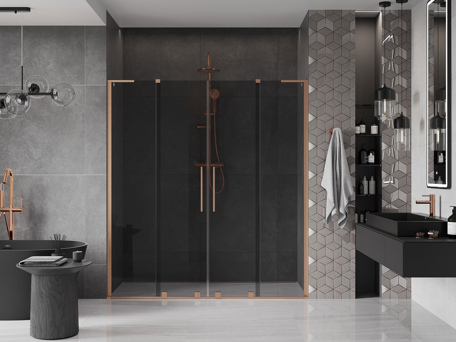 Mexen Velar L Duo puertas de ducha correderas 170 cm, grafito, cobre cepillado - 871-170-003-42-65