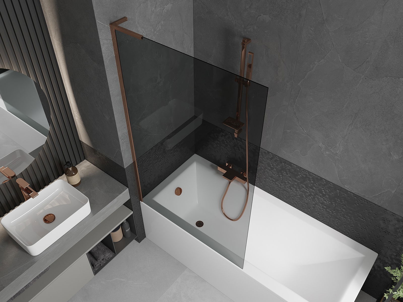Mexen Next L biombo para bañera de 1 hoja 100 x 150 cm, grafito, oro rosado - 895-100-000-03-40-60