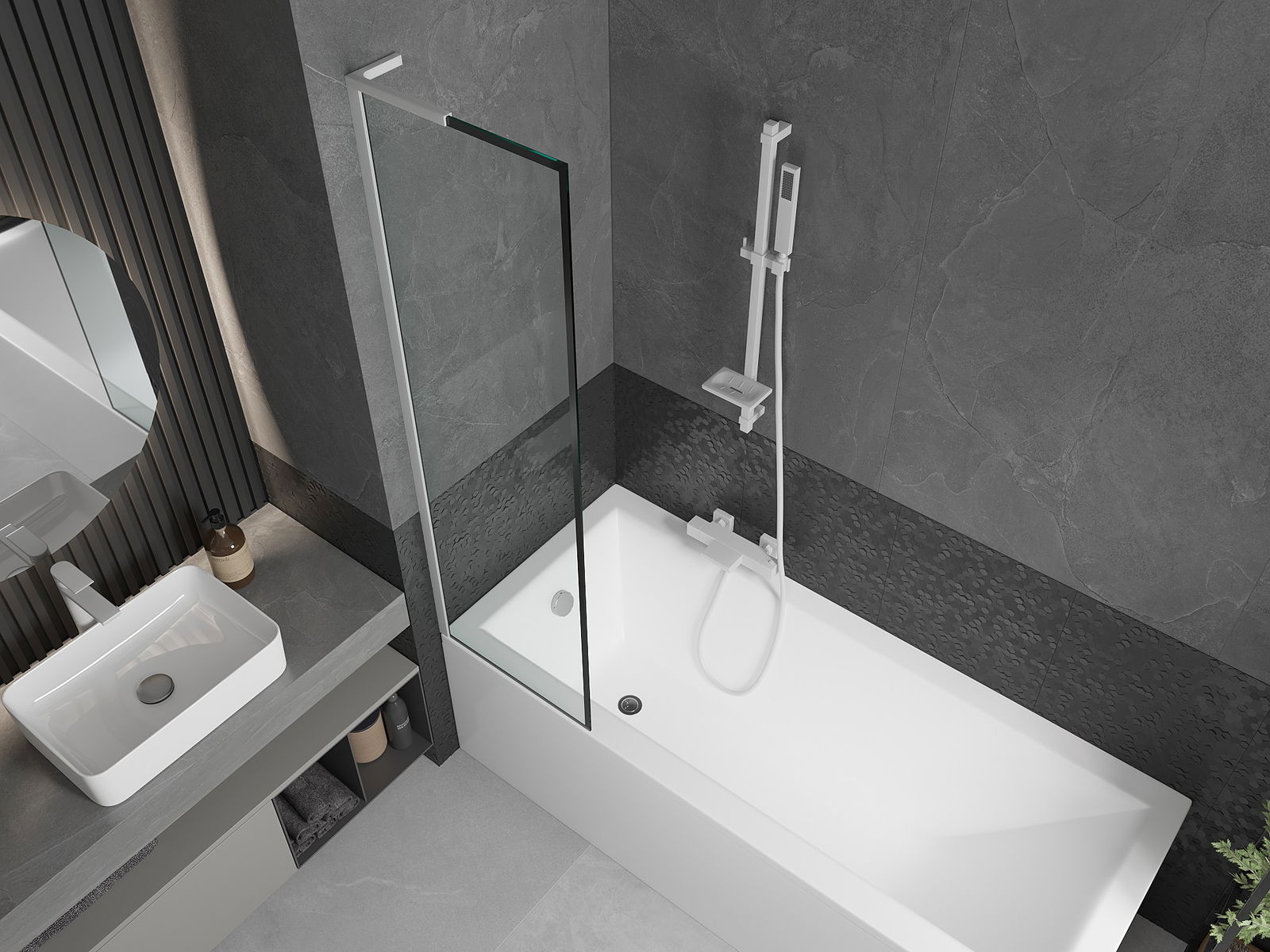 Protección efectiva contra el derrame de agua durante el baño. La mampara tiene juntas que se ajustan perfectamente a la superficie del vidrio y al borde de la bañera. Solución funcional que garantiza seguridad y facilidad de limpieza.