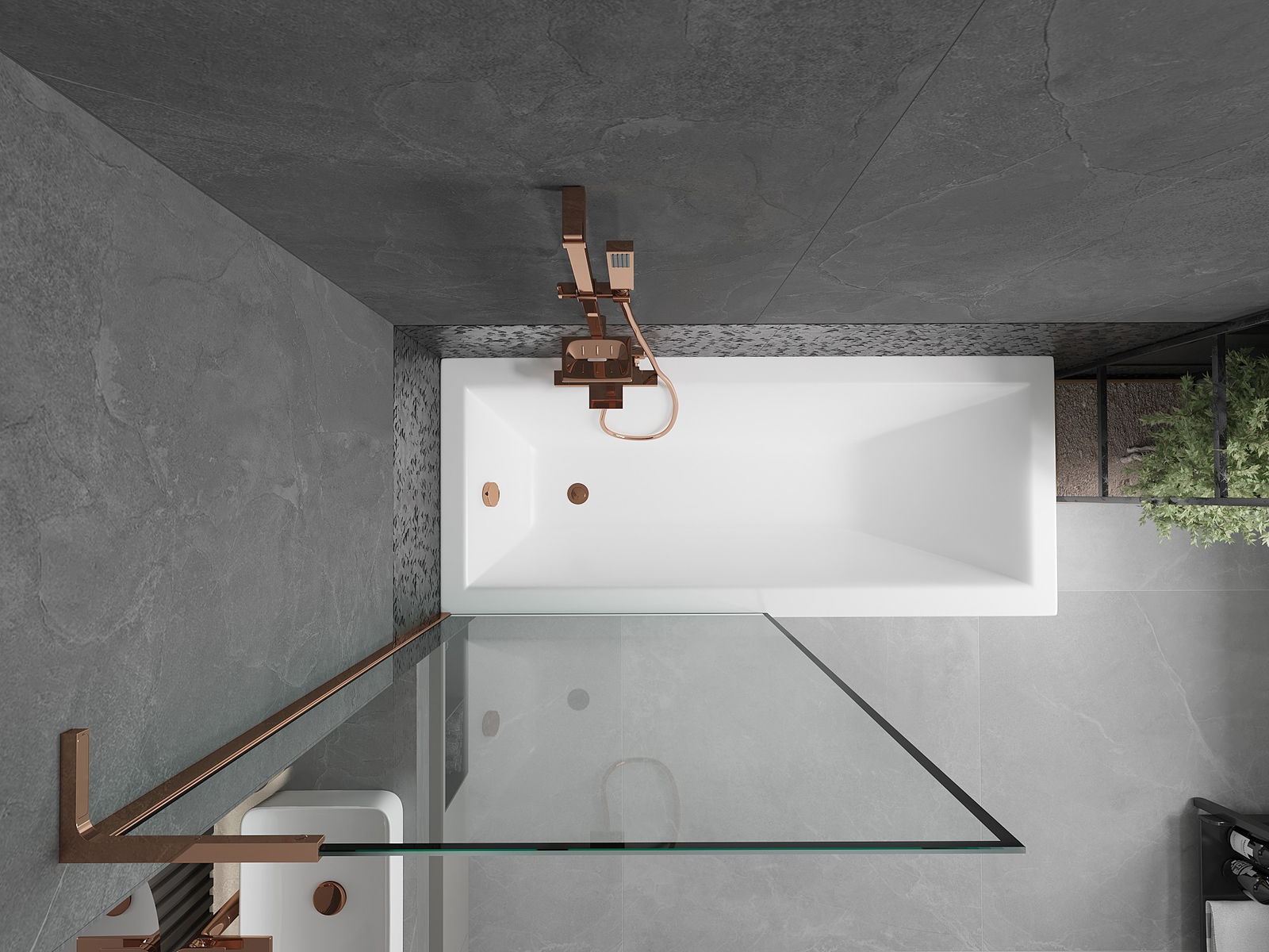 Mexen Next L pantalla de bañera de 1 hoja 90 x 150 cm, marco negro, oro rosa - 895-090-000-03-70-60