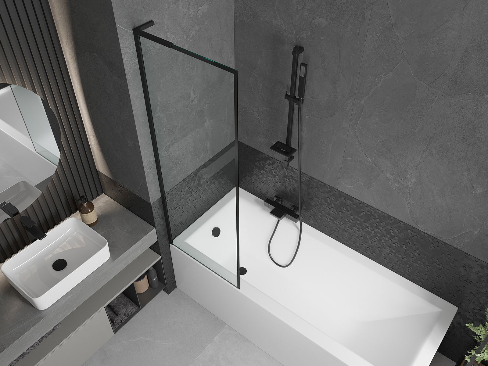 Mexen Next L mampara de bañera de 1 hoja 60 x 150 cm, marco negro, negro - 895-060-000-03-70-70