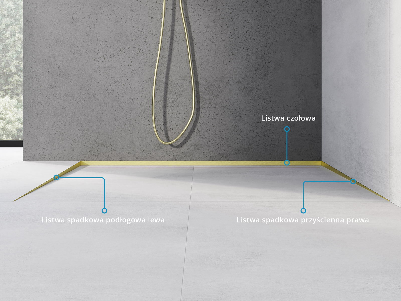 El uso de un listón de caída elimina la necesidad de crear un llamado sobre de azulejos, lo que simplifica decisivamente el proceso de instalación del desagüe lineal. Esta solución permite evitar el trabajo adicional y laborioso que implica la realización de un sobre, que normalmente se utilizaría para lograr la pendiente adecuada en el suelo.