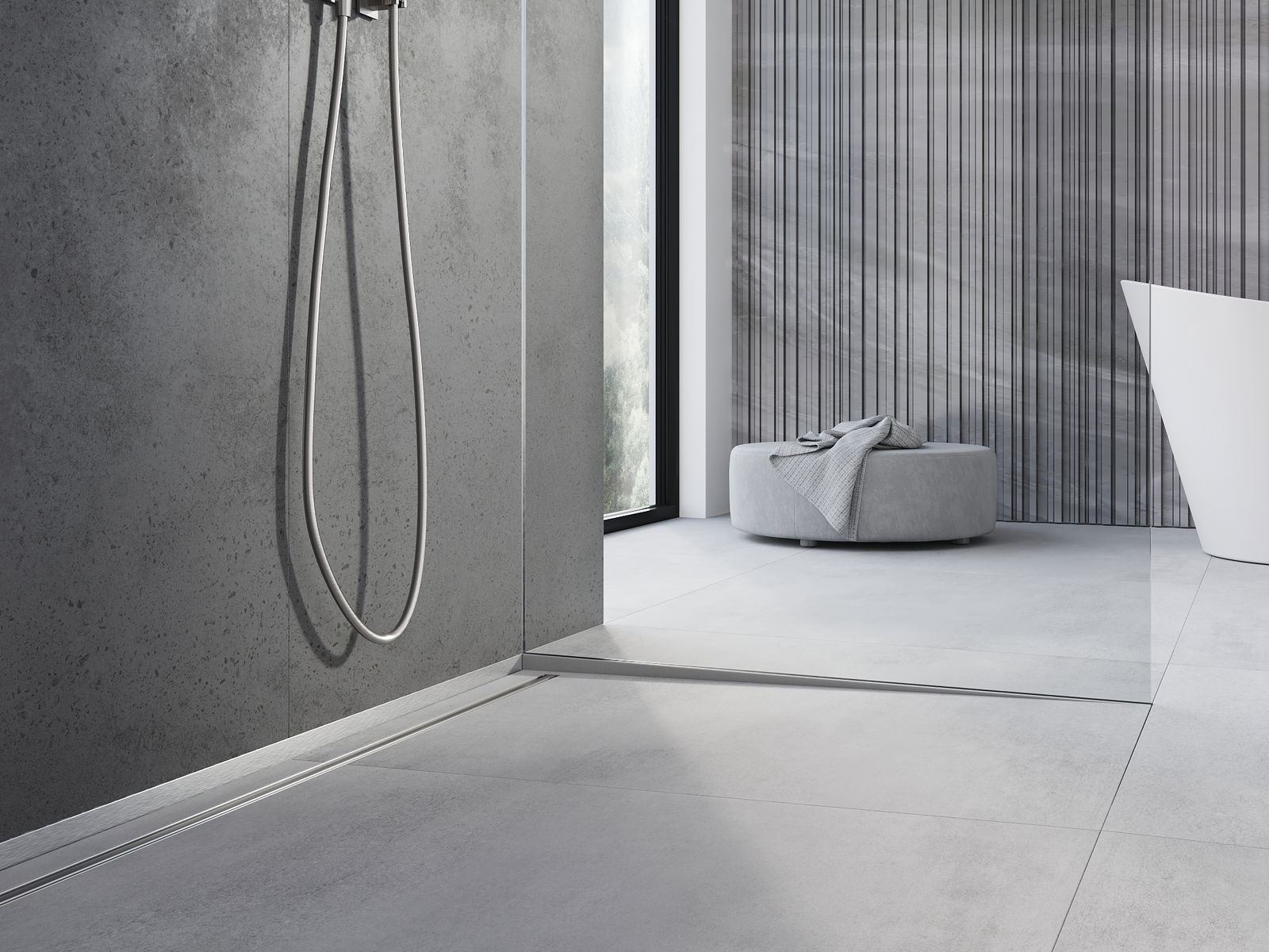 El uso de un listón de caída elimina la necesidad de crear un llamado sobre de azulejos, lo que simplifica decisivamente el proceso de instalación del desagüe lineal. Esta solución permite evitar el trabajo adicional y laborioso que implica la realización de un sobre, que normalmente se utilizaría para lograr la pendiente adecuada en el suelo.