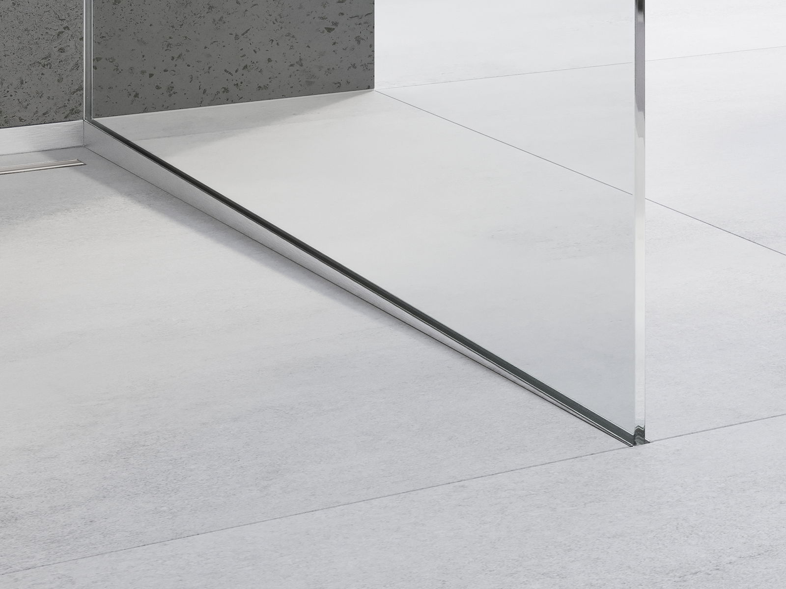 El zócalo tiene espacio para la instalación del vidrio de la ducha, lo que no sólo facilita el proceso de instalación, sino que también permite ocultar el acabado con silicona