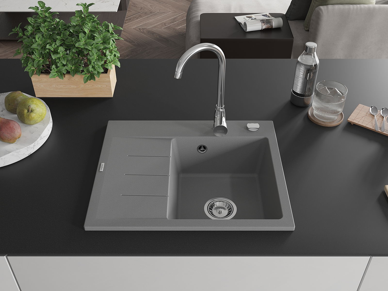 El fregadero está hecho de granito de alta calidad. Constituye un complemento elegante y, sobre todo, práctico para cualquier cocina, independientemente de su estilo. La alta calidad y durabilidad del granito aseguran un uso durante muchos años.