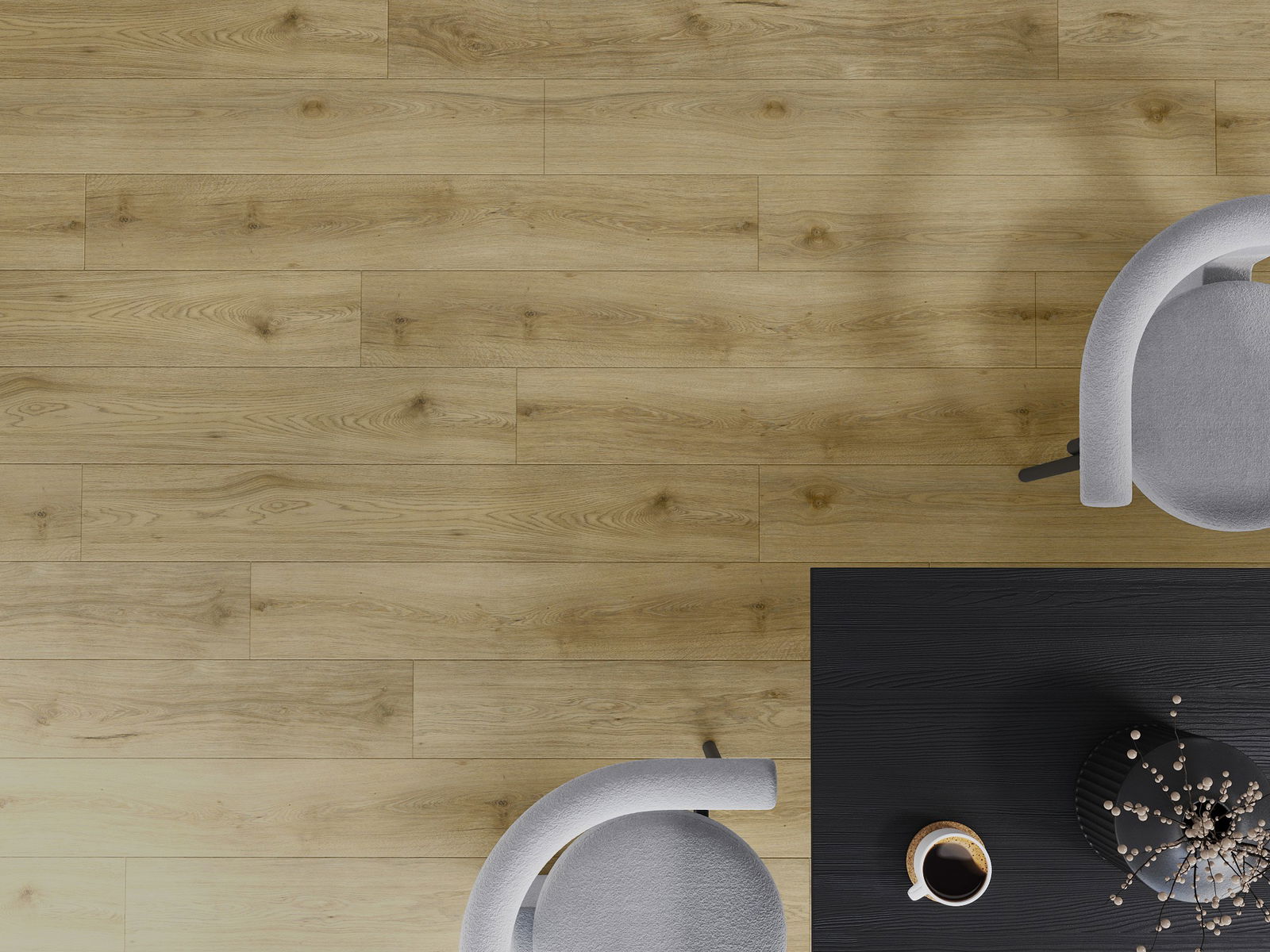 Los paneles tienen una junta de 4 lados: cada lado ha sido fresado de tal manera que al colocarlos se forme una conexión en forma de V. Este diseño hace que el suelo adquiera una estructura más definida, lo que le da profundidad y un carácter estético. Este efecto es especialmente valorado en arreglos modernos, donde los detalles resaltan la apariencia única del interior.