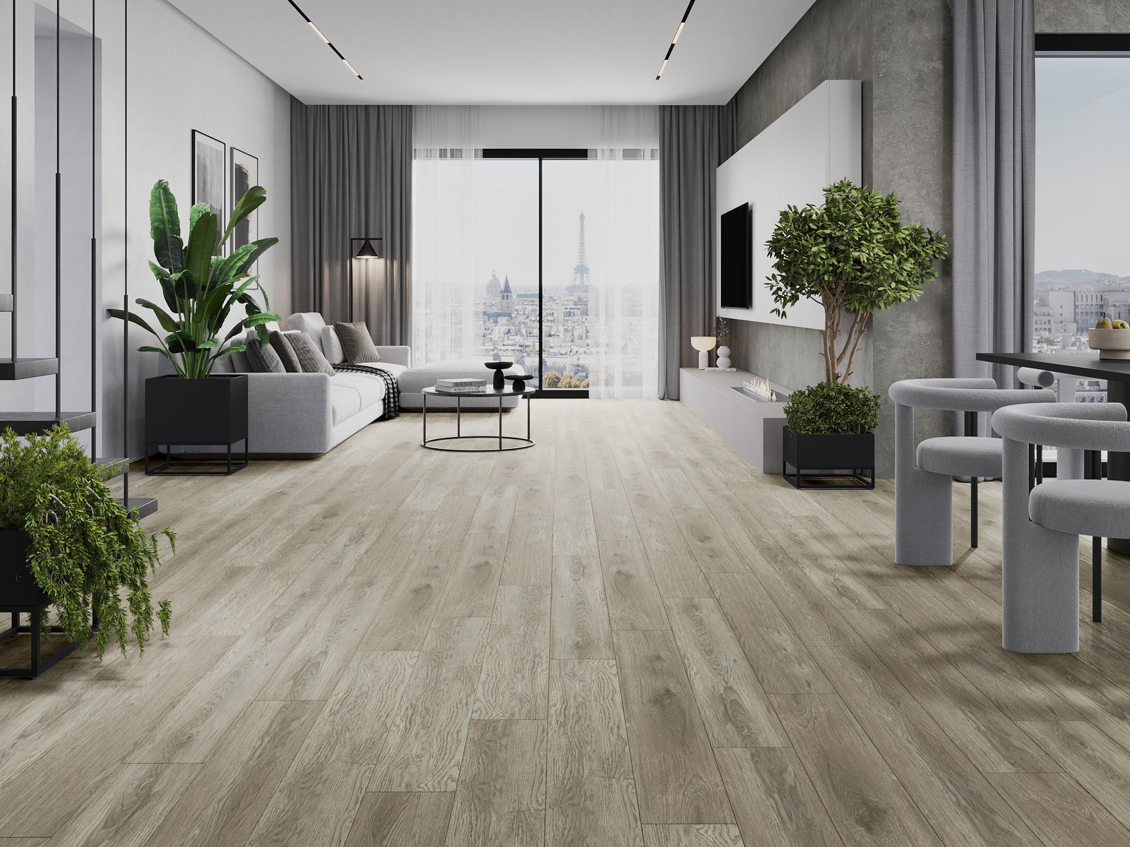 Mexen Sky Valley son paneles de vinilo innovadores de dimensiones 1240 x 182 mm y espesor de 6,5 mm, que ofrecen una durabilidad y estética excepcionales. Gracias a su impermeabilidad del 100% y superficie protectora contra manchas, su mantenimiento es extremadamente sencillo. Los paneles también son resistentes a daños mecánicos y rayaduras, lo que los hace ideales para áreas de uso intensivo. Además, la base integrada IXPE de 1,5 mm garantiza comodidad y compatibilidad con calefacción por suelo radiante de baja temperatura.