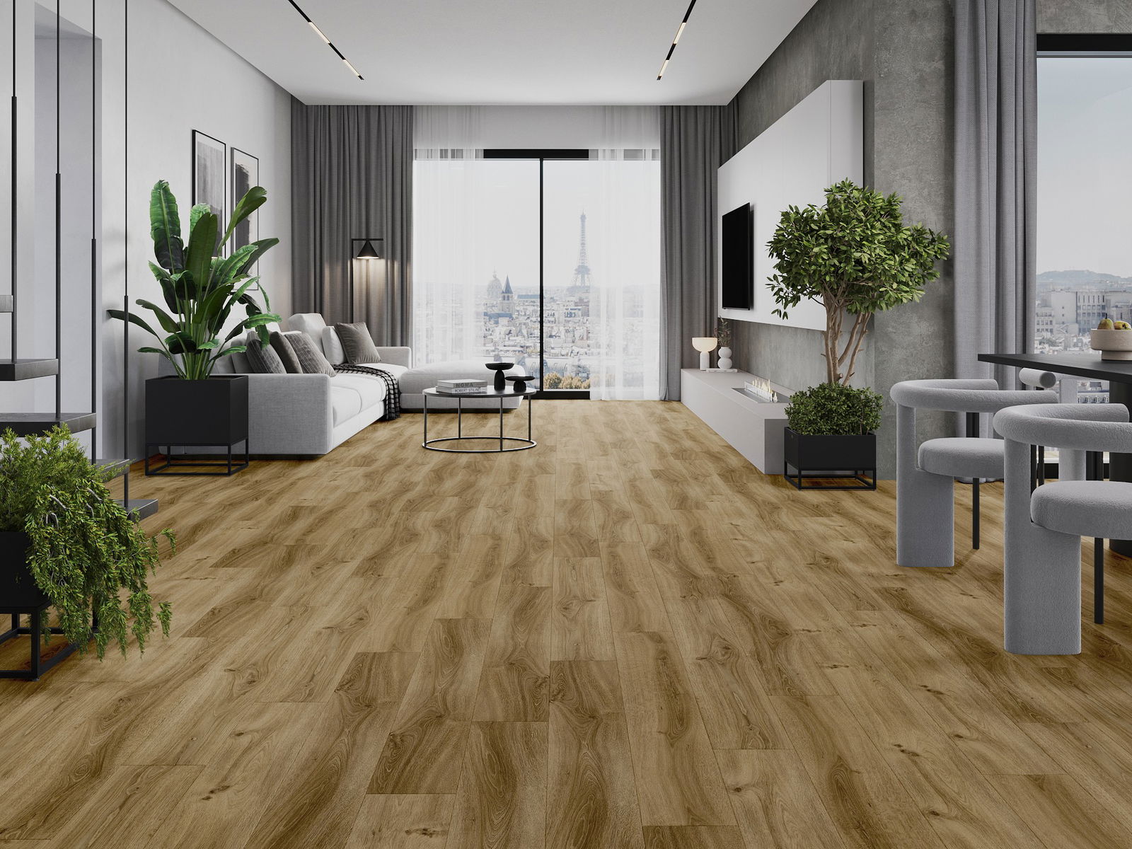 El panel de vinilo es la solución ideal para cualquier interior, combinando diseño moderno y funcionalidad. Gracias a su grosor de 6,5 mm y la base integrada IXPE de 1,5 mm, ofrece confort y aislamiento acústico. La resistencia al agua del 100% y la resistencia a los arañazos garantizan la durabilidad, mientras que la estética de las 4 caras en V-Fuga atrae la atención. El panel también tiene una clase de uso 32 y es compatible con calefacción por suelo radiante de baja temperatura, lo que lo convierte en una opción versátil para cualquier habitación.