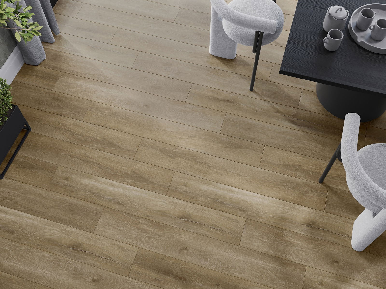 Los paneles tienen una junta de 4 lados: cada lado ha sido fresado de tal manera que al colocarlo se crea una unión en forma de V. Este diseño hace que el suelo adquiera una estructura más definida, lo que le proporciona profundidad y un carácter estético. Este efecto es especialmente apreciado en decoraciones modernas, donde los detalles resaltan el aspecto único del interior.