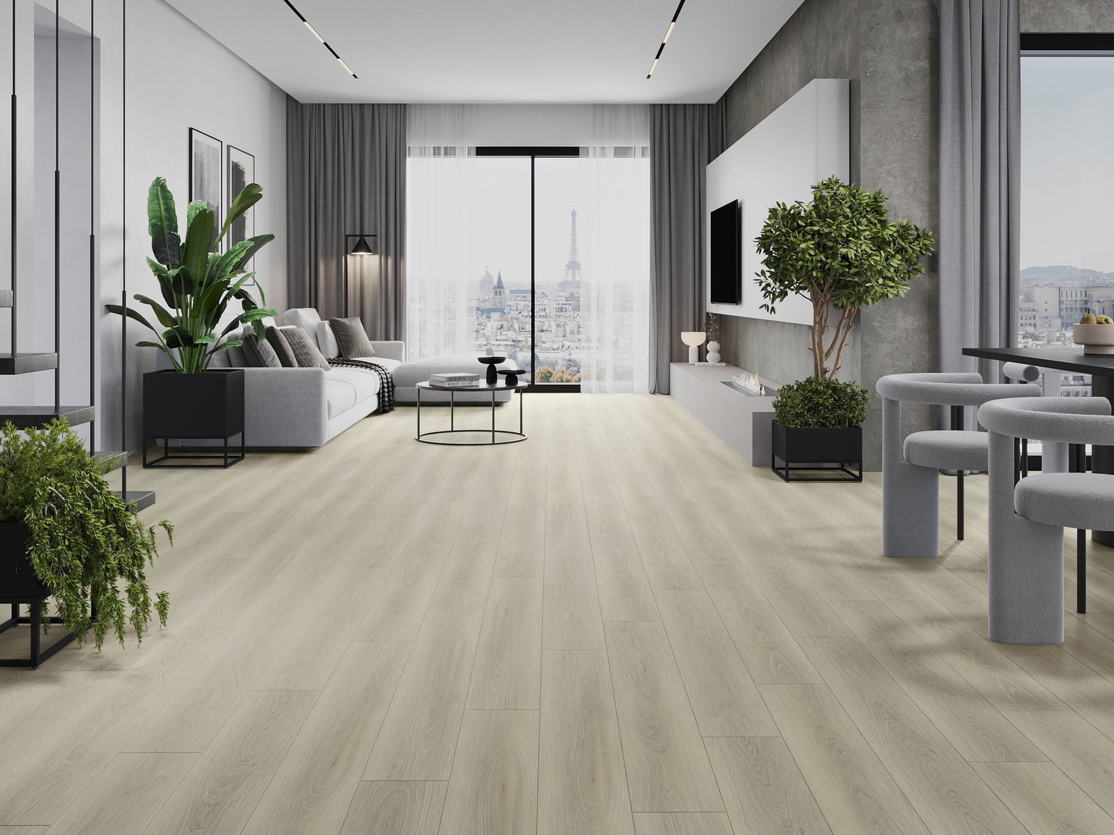 Los paneles tienen una junta de 4 lados: cada lado ha sido fresado de tal manera que al colocarlo se crea una unión en forma de V. Este diseño hace que el suelo adquiera una estructura más definida, lo que le proporciona profundidad y un carácter estético. Este efecto es especialmente apreciado en decoraciones modernas, donde los detalles resaltan el aspecto único del interior.