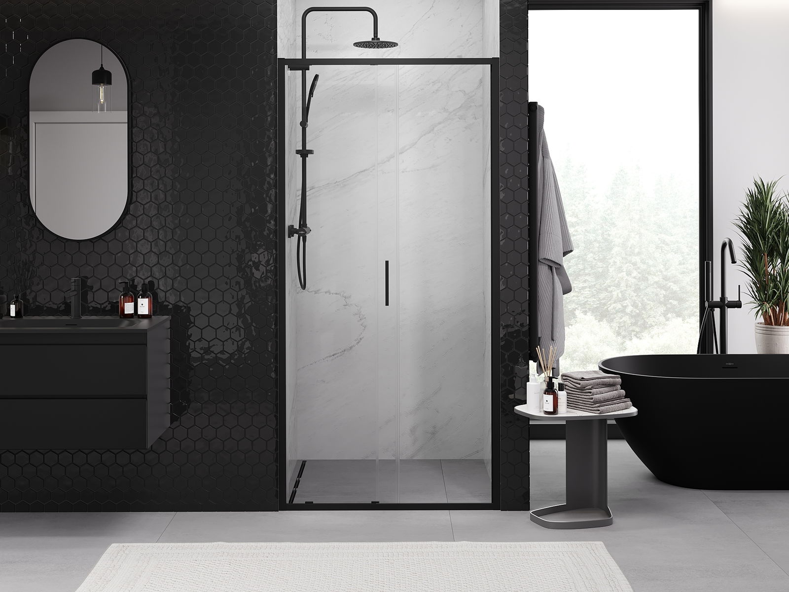 Mexen Exo puerta de ducha corredera 120 cm, transparente, negra - 8151-120-000-70-00