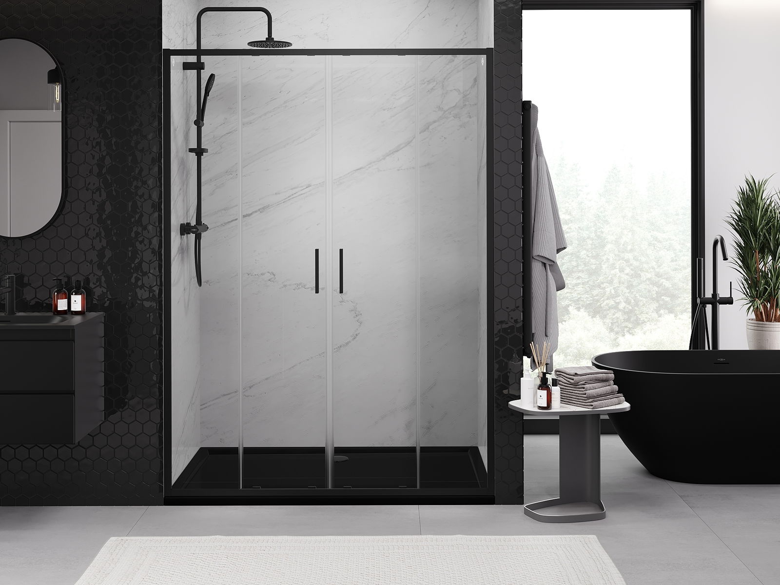 Mexen Exo puertas de ducha dobles correderas 140 cm, transparentes, negras - 8152-140-000-70-00