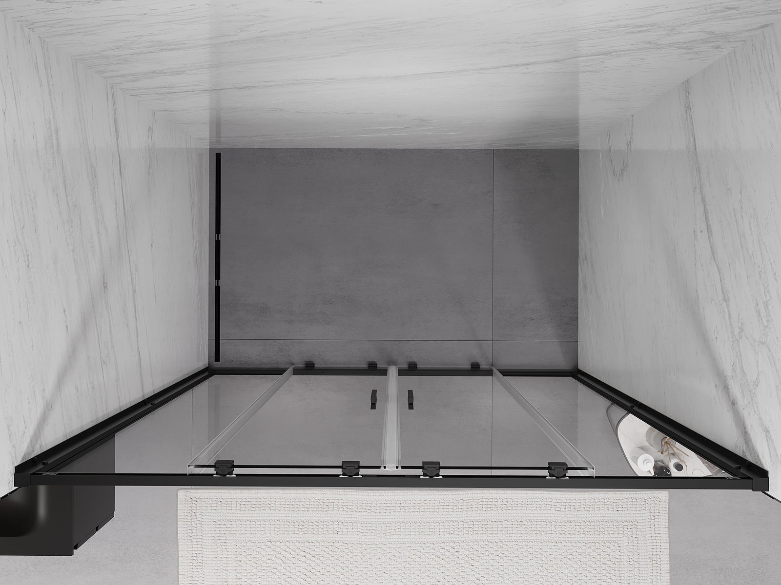 Las puertas correderas se mueven sobre guías especiales y no requieren espacio adicional para abrirse, por lo que son adecuadas para baños más pequeños. Gracias a los rodillos dobles con cuerpo metálico, su movimiento es suave.