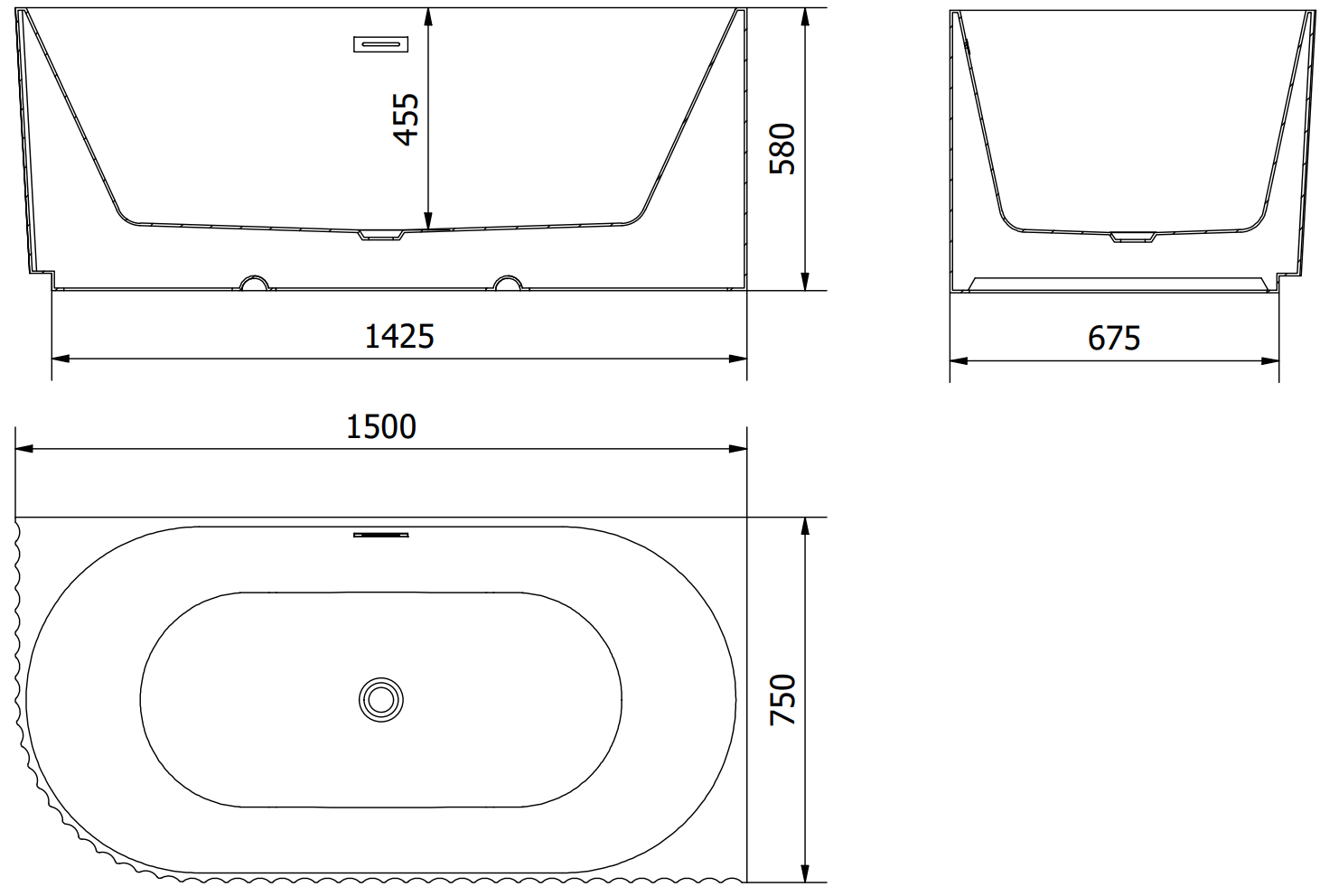 Mexen Gia bañera exenta de esquina acanalada derecha 150 x 75 cm, negro mate, rebosadero negro - 52701507571P-70