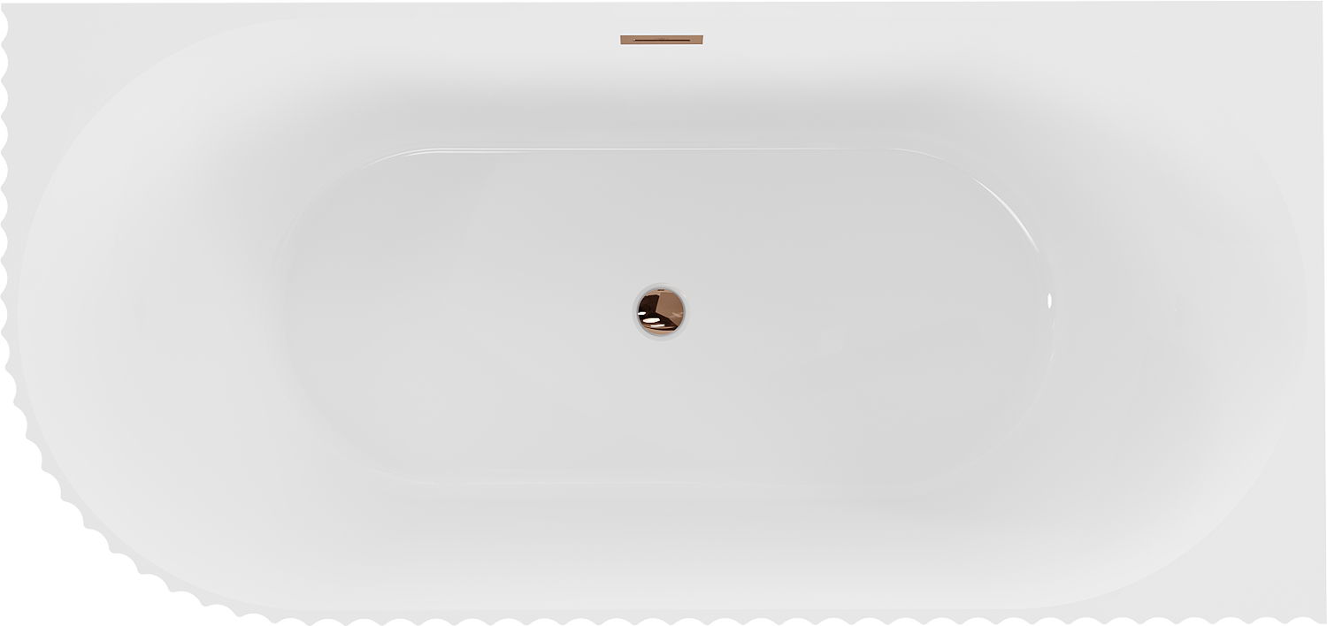 Mexen Gia bañera independiente esquinera acanalada derecha 170 x 80 cm, blanco brillo, rebosadero oro rosa - 52701708000P-60