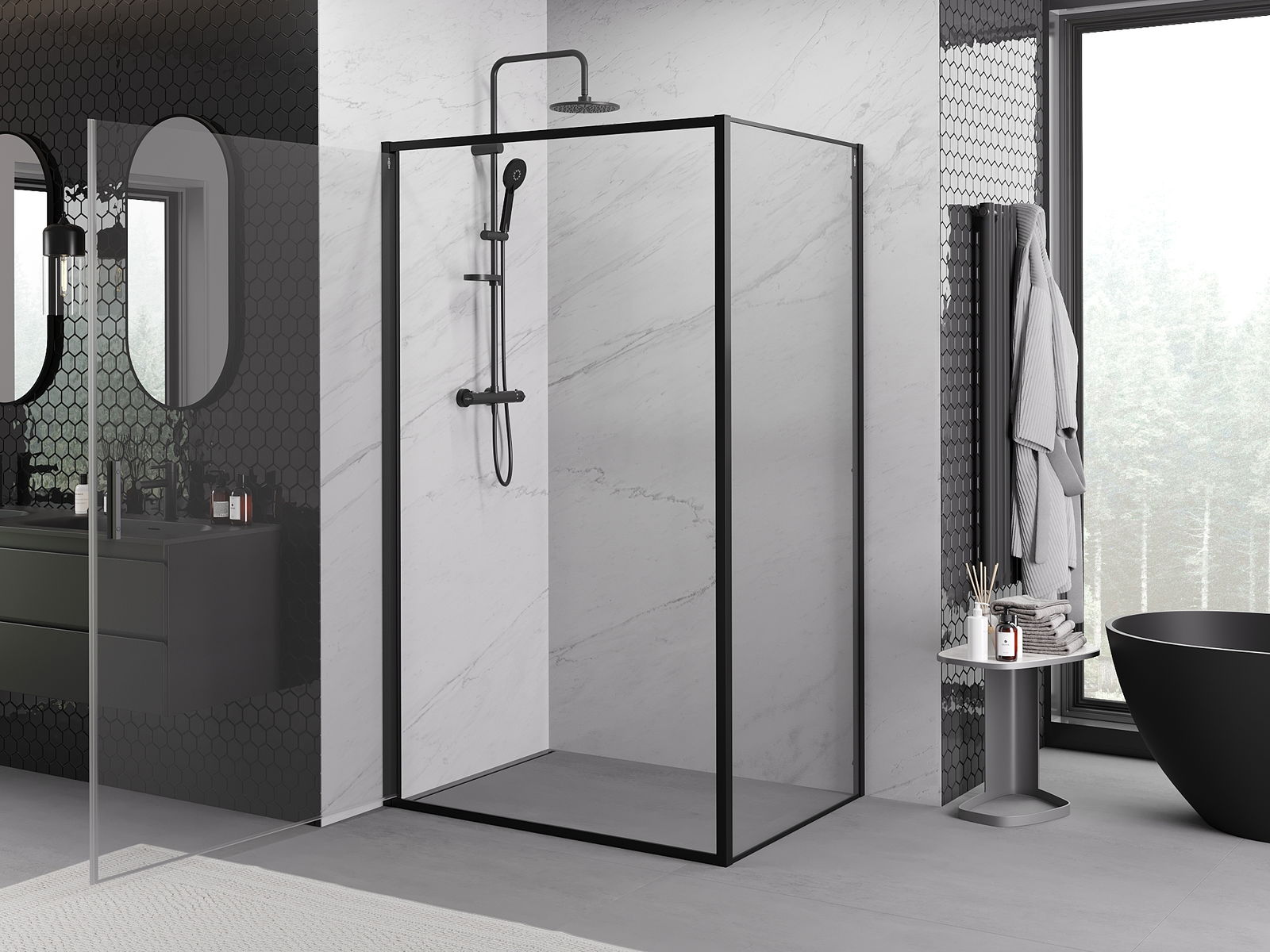 Mexen Rio cabina de ducha cuadrada 90 x 90 cm, transparente, negra - 860-090-090-70-00