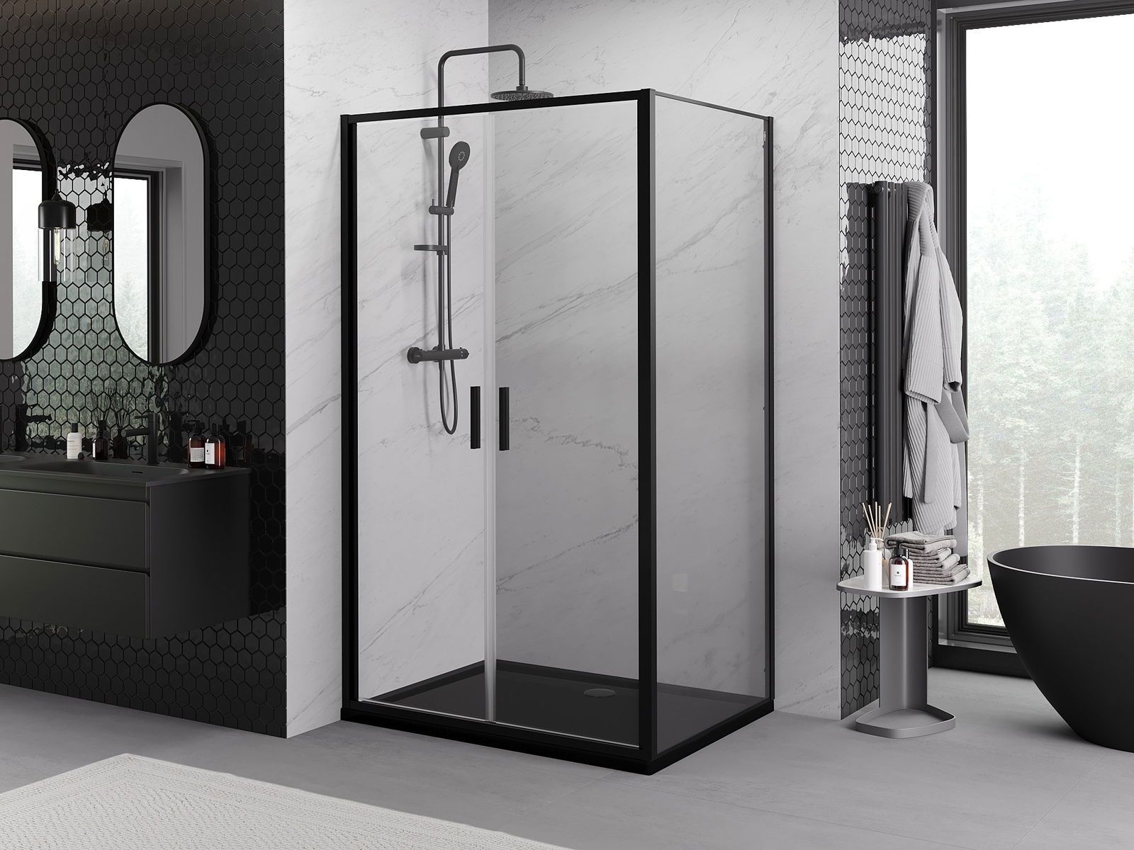 Mexen Rio cabina de ducha cuadrada 90 x 90 cm, transparente, negra - 860-090-090-70-00