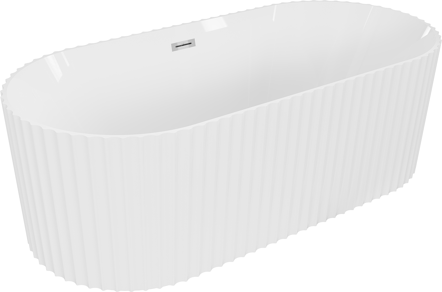 Mexen Paola bañera exenta acanalada 150 x 75 cm, blanco brillo, rebosadero cromado - 52721507500-01